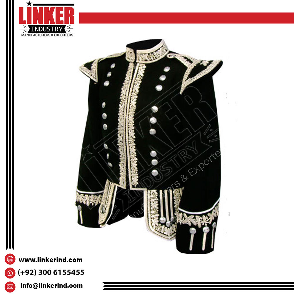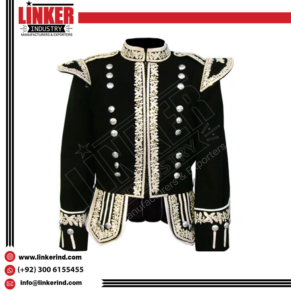 Silver Hand Embroidered Royal Doublet Especially for a drummer to have a 100% professional look there must be some quality and product manufacturing standards, our custom made doublet in original material will give you a solid professional look in your band.