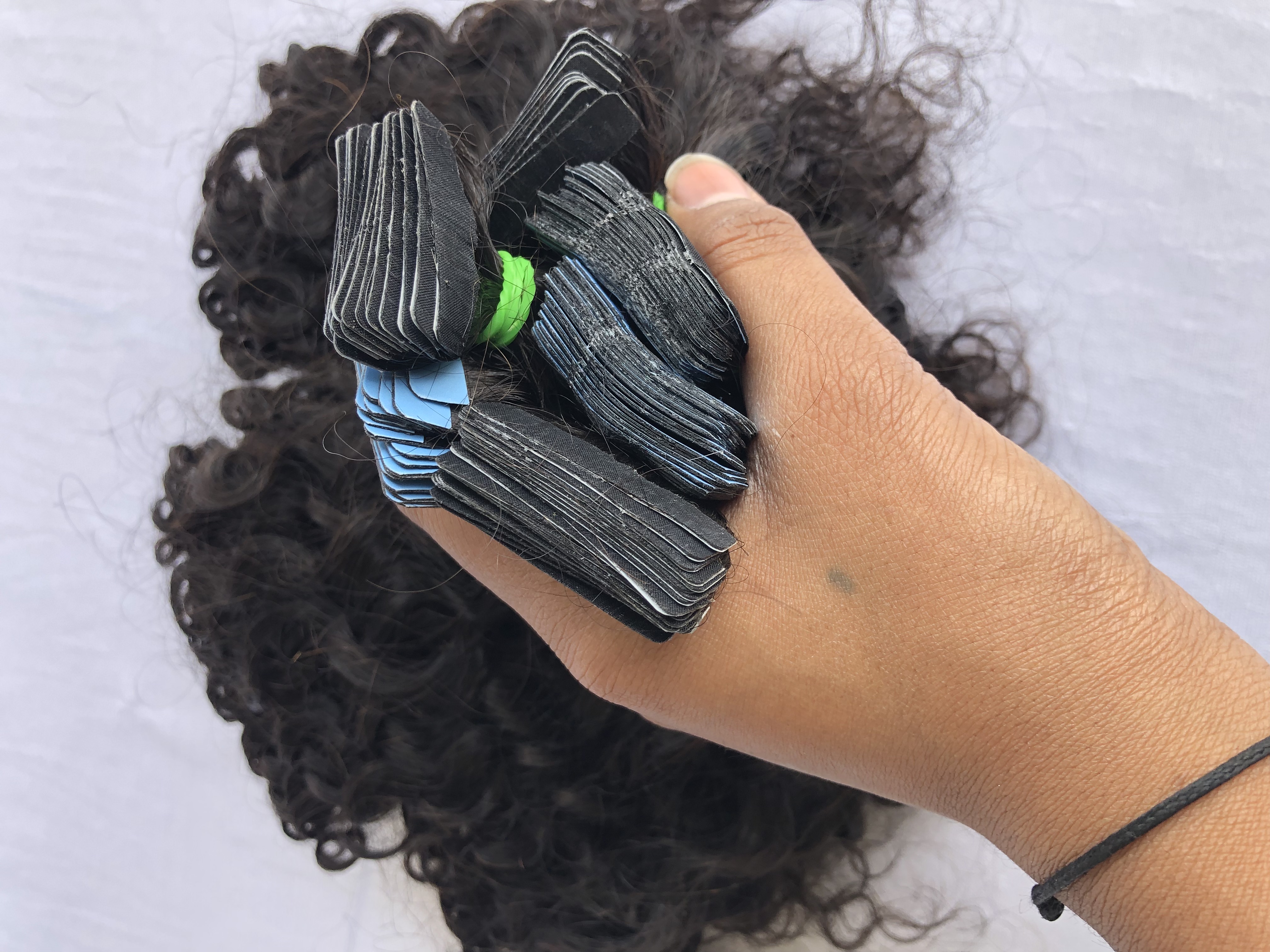 Export Raw Unprocessed Indian Temple 24'' Kinky Curly Tape Ins Extensions Single Donor Hair Wholesale Price List Indian Supplier