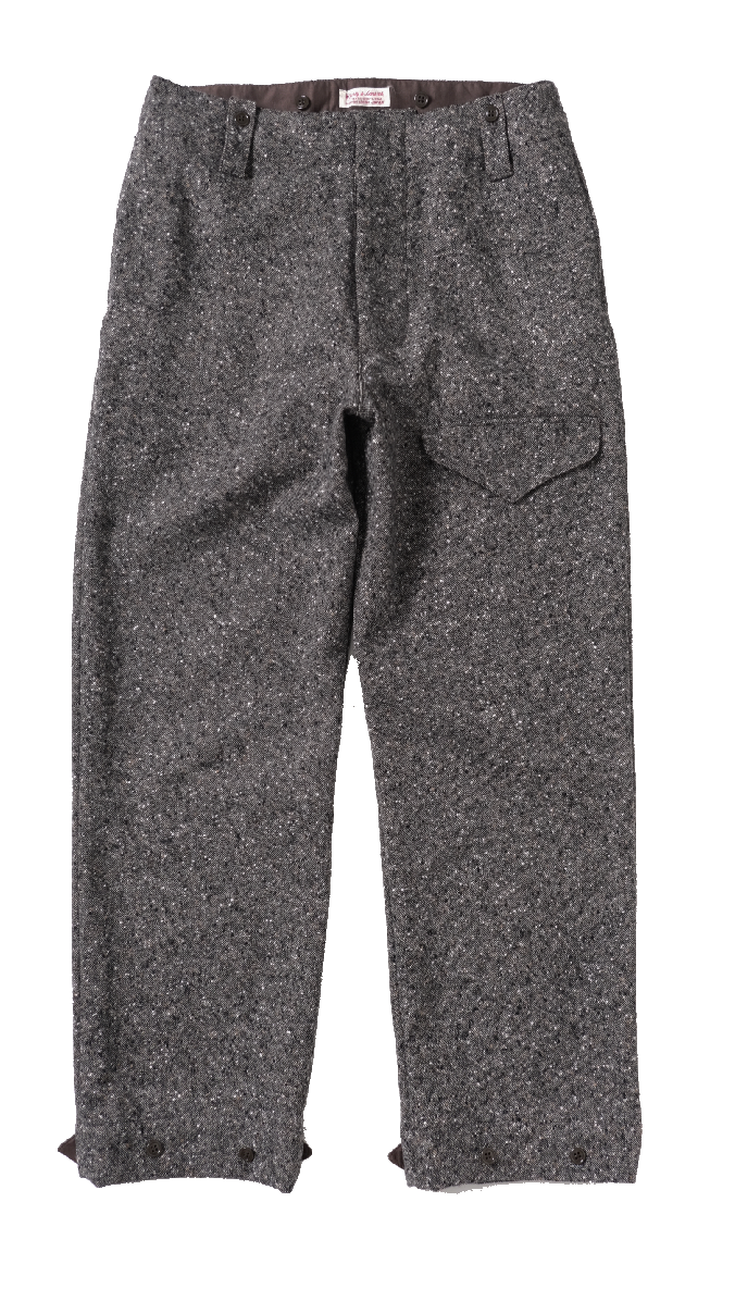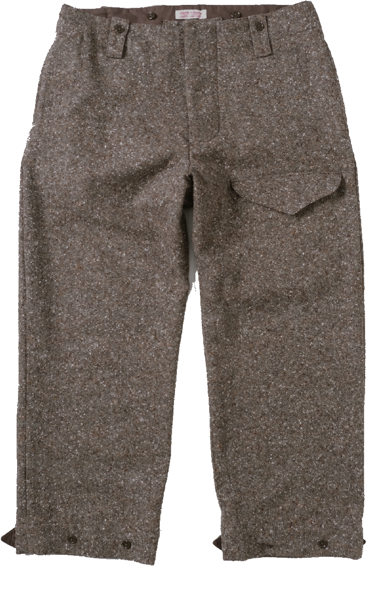 Based on the Canadian Army battle dress trousers of the 1950s, rendered in homespun fabric.