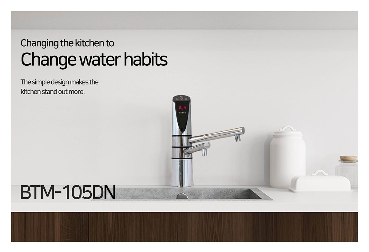 One-Touch Selection Convenient touch-screen technology operation is represented as icons for one-touch selection of the desired ionized water on the control panel of the main body. |