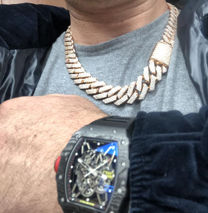 Iced Out Jewelry For Man Luxury Real Gold Necklace 12mm Width Miami Cuban Link Chain 14k Gold