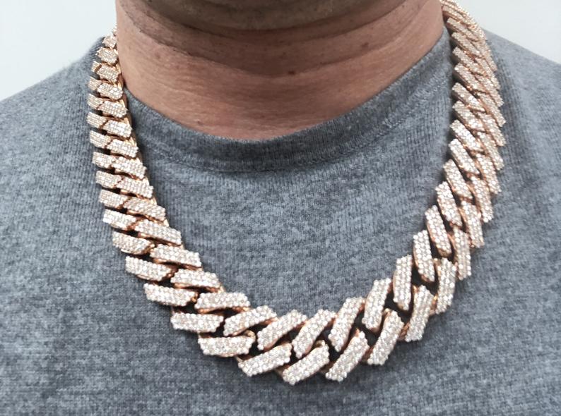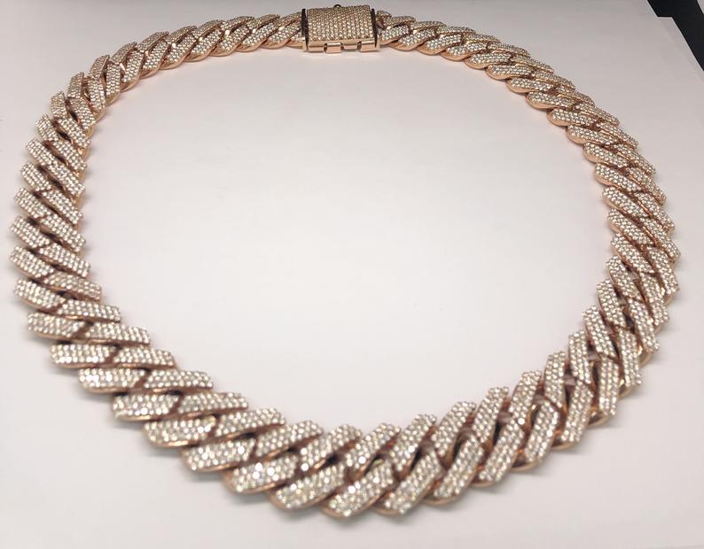 Diamond chains 10K Rose Gold DEF-VS Round Cut Diamond Iced Out Miami Cubin Link chain necklace