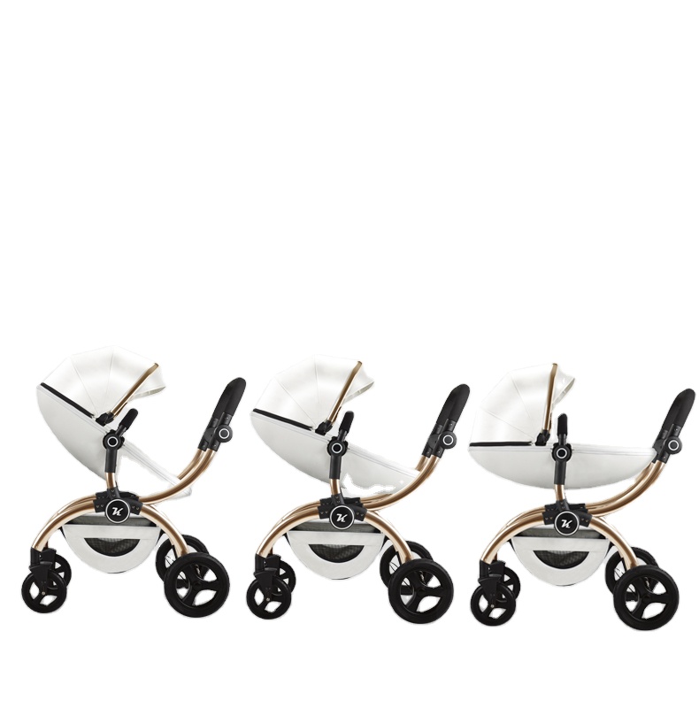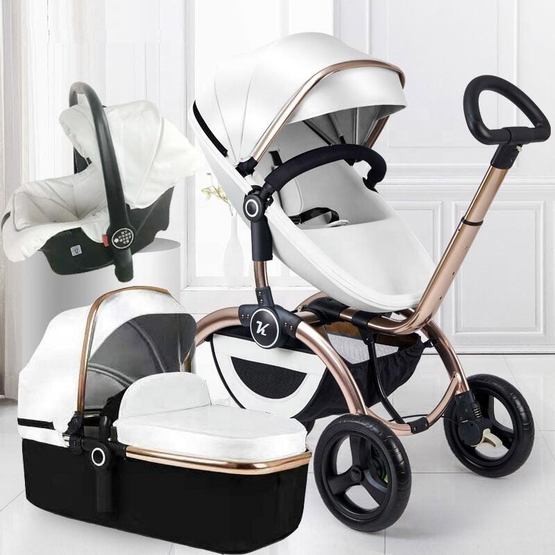 3 in 1 baby pram/ stroller white color high quality baby strollers 2 in 1 leather stroller