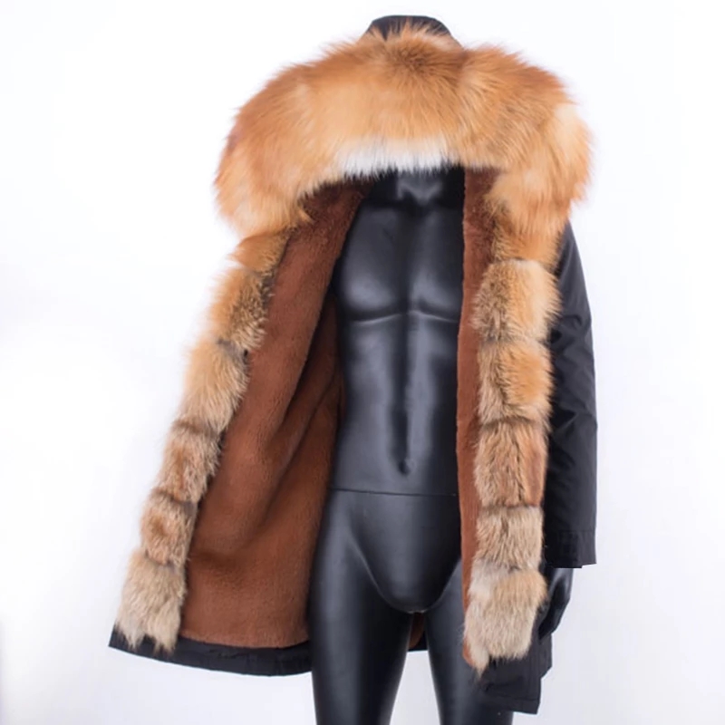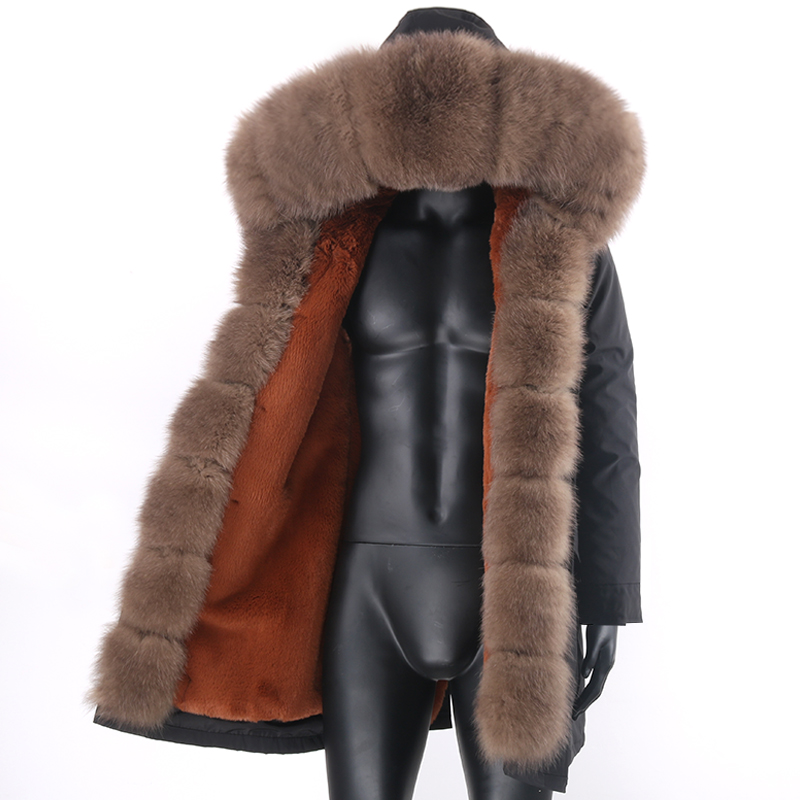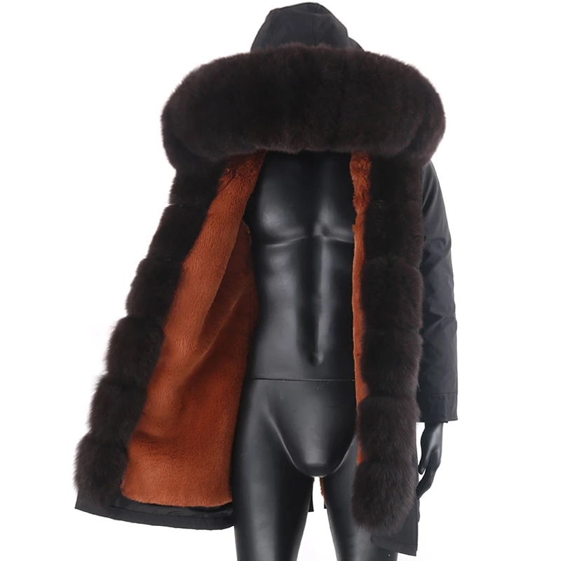 Wholesale Winter Detachable Faux Rabbit Fur Lining Fox Fur Collar Men Coat Jacket Long Mens Fur Parka
