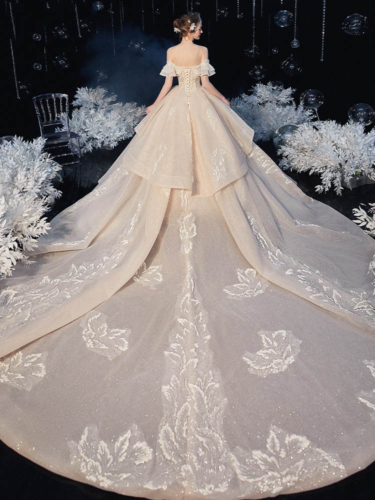 W1001 European Style Pregnant Woman Boat Neck Long Train Wedding Dresses