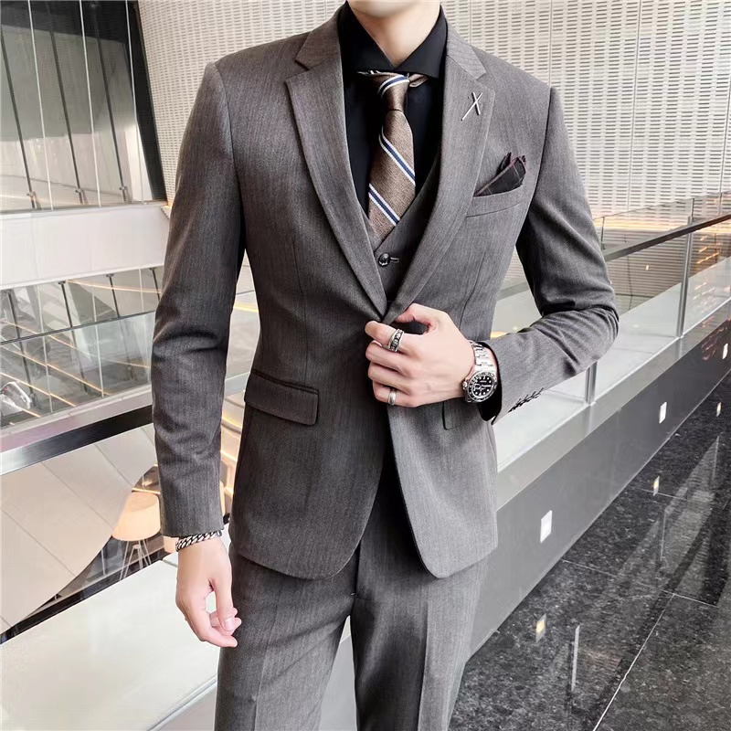 Suit men's three-piece suit Korean version of slim suit men's business professional formal attire groomsman married men's wear