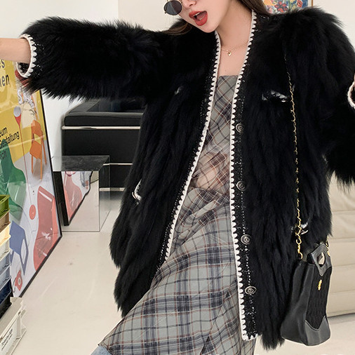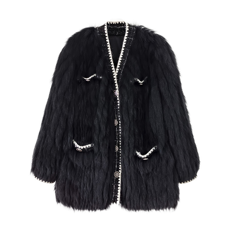 2023 Natural Natural Fox Fur Coat Women Long Sleeve Wear With Pockets Single Breasted Popular Fur Coat Fur Jacket