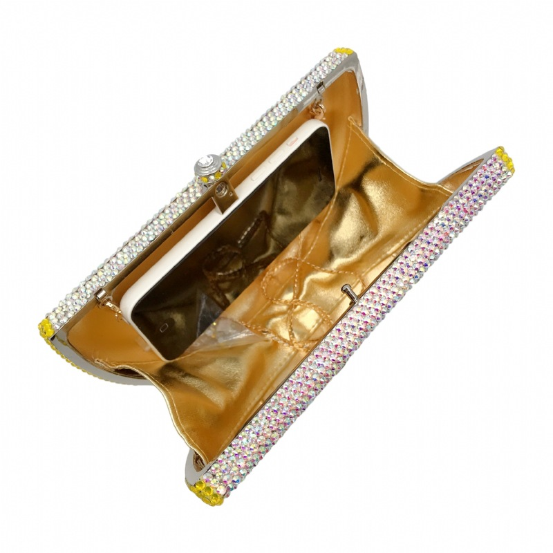 Lemon shape diamond dinner clutch foreign trade banquet fashion bag flat diamond Women's bag