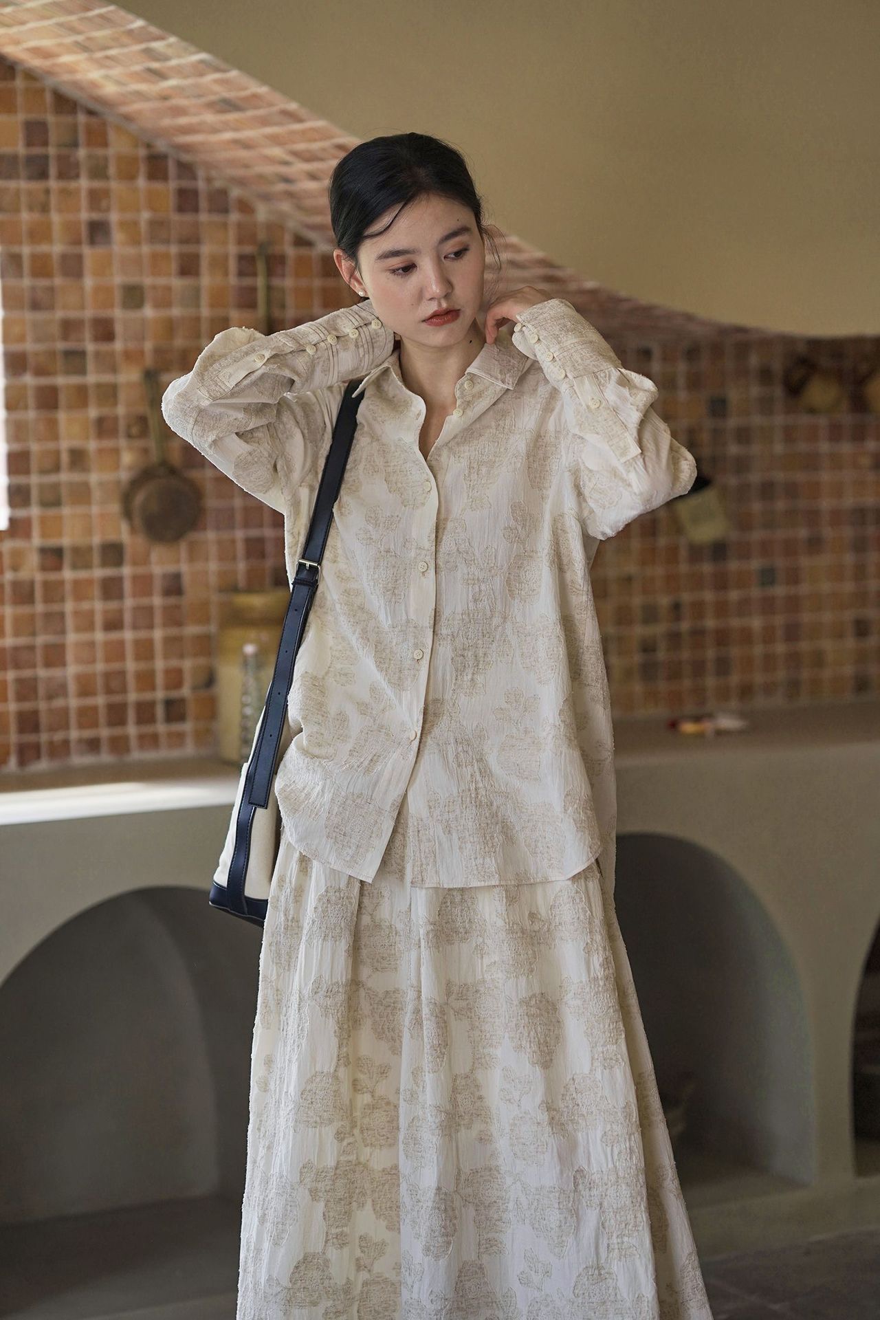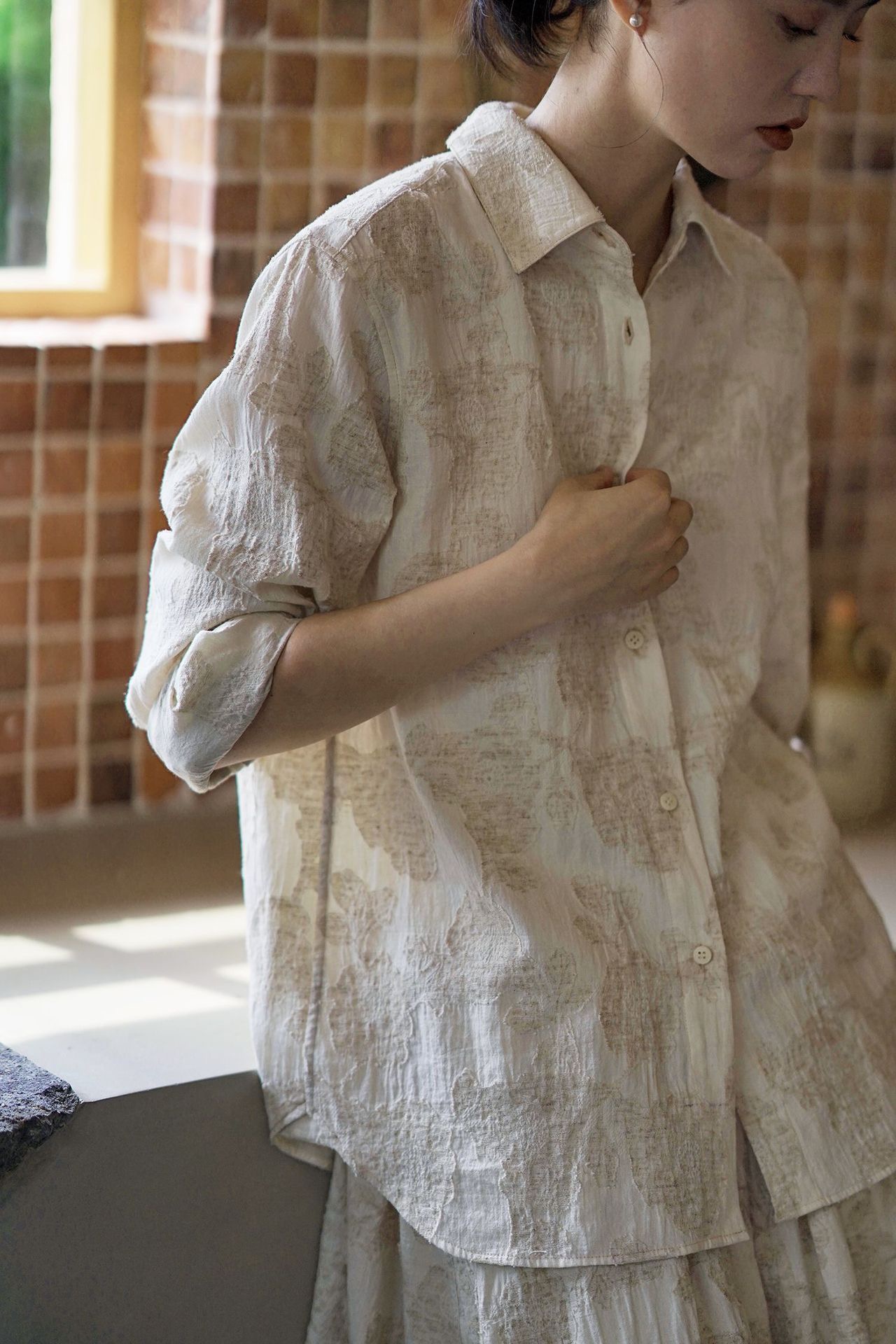 Wholesale Women's Clothing Shadow Embroidery Cotton and Linen Contracted Long sleeve Shirt Suits,