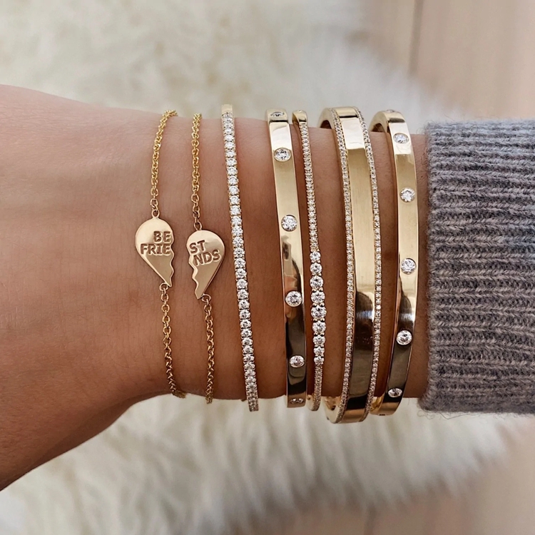 Luxury Famous Brand Designers Jewelry Lab Grown Diamond Bangle 14k Yellow Gold Diamond Inlay Bracelet For Women
