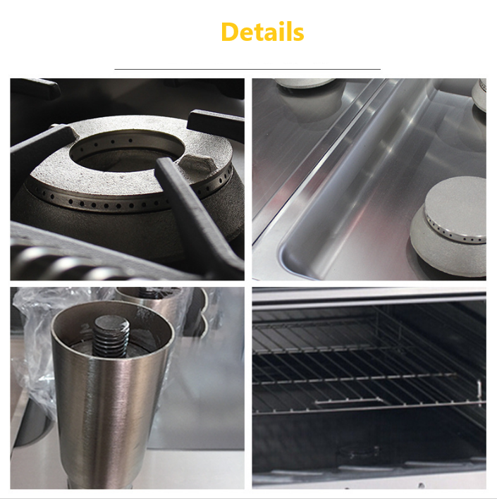 Jinbest Commercial Stainless Steel Cooking Appliances Integrated 6 Burners Natural Gas Stove Barbecue Oven