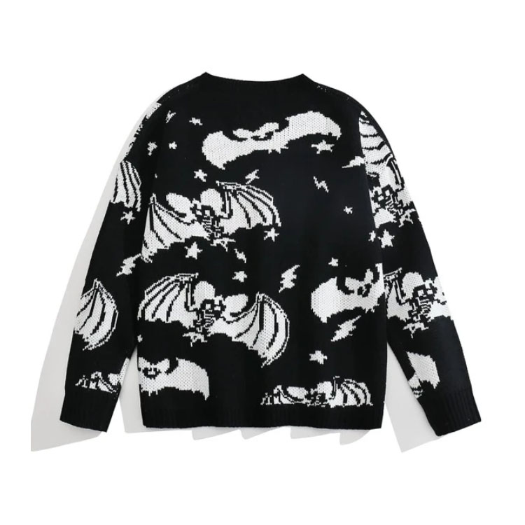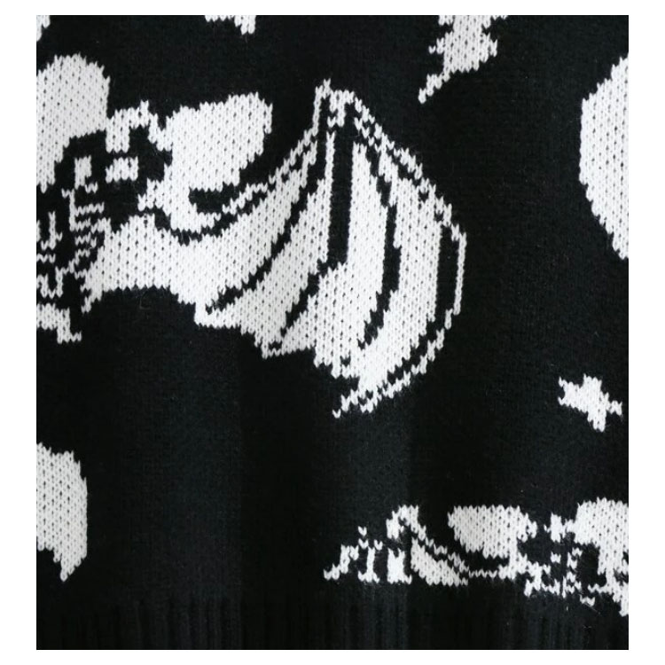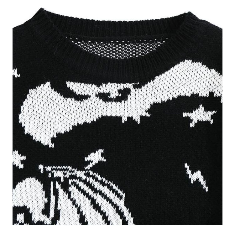 Custom New Men's Halloween sweater white bat jacquard black round neck Pullover Sweater