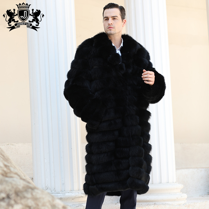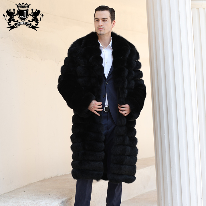 Winter New Men's Fox Fur Coat Long Style Fur Collar Jacket Men Fur Overcoat
