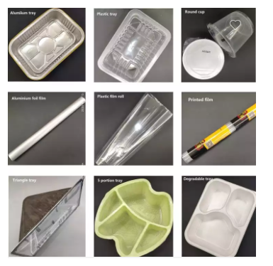 Suitable for medium or high requirement of packaging capacity. The machine is made of 304 sanitary stainless steel machine body and aluminium alloy structure. lt adopts high efficiency and energy saving Fuji drive system, special die seat design for easy change, Korea lS control system etc, which makes the machine user-friendly. User can easily change the die seat accordingly different packing requirement. plastic, aluminum, cardboard, PLA etc.The cover film should match the trays for sealing. The machine will pack foods under totally closed vacuum condition, thus to assure high degree of gas replacement (>99%).The machine adopt PLC and touch screen to support its control system. User can preset all parameter with its HMI. Just press start button, the machine will automatically run the procedure of film feeding - preheat - vacuum-seal-film trimming-scrap gather-finish output. It require only one worker to load trays by manual, at the end of machine all packed trays will be delivered to next packing procedure automatically. This machine support many packing modes.
