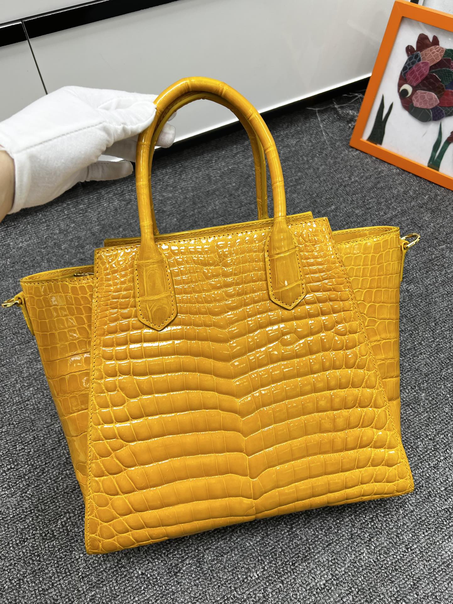 * Avoid contact of leather goods with PVC to prevent dye or color migration. Always keep the exotic hand bag or leather goods in its original dust bag.