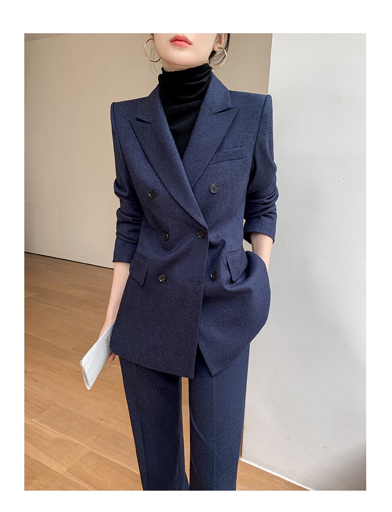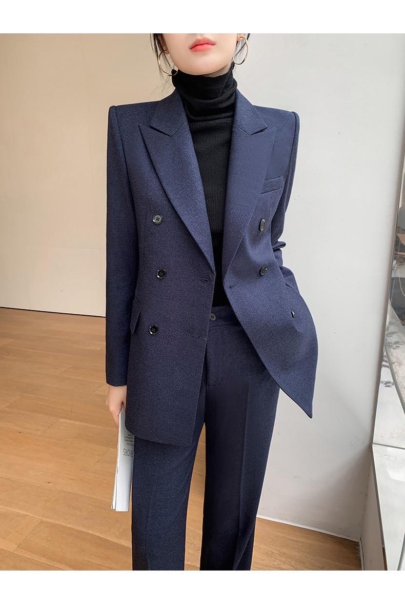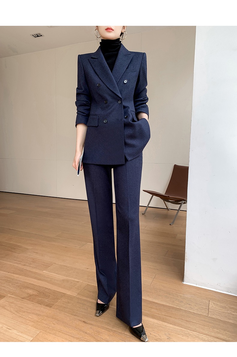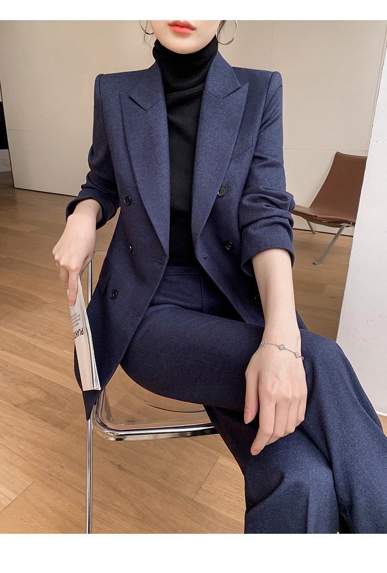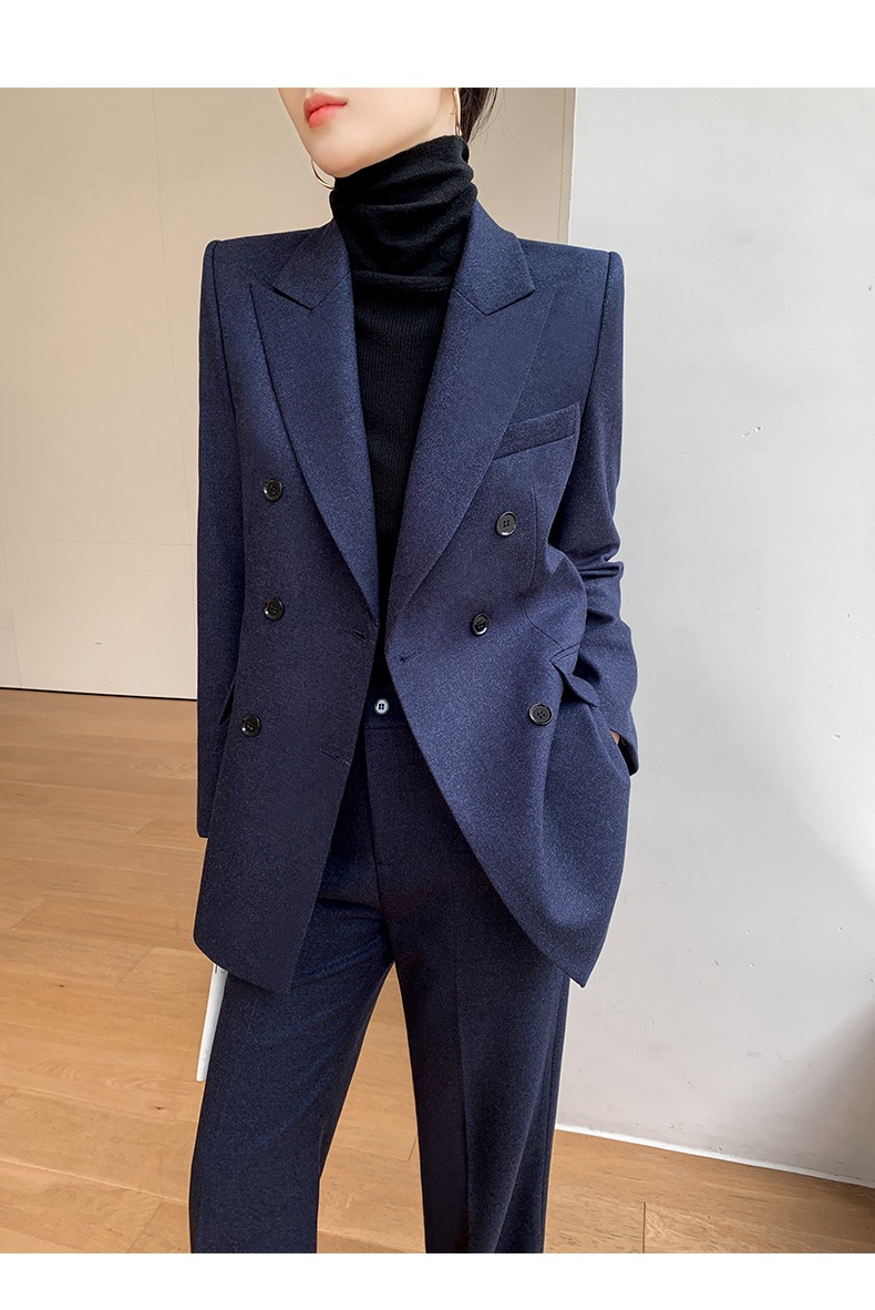 2023 Women Office Woolen cloth Formal suit Double-breasted Blue Two piece set Pant suit