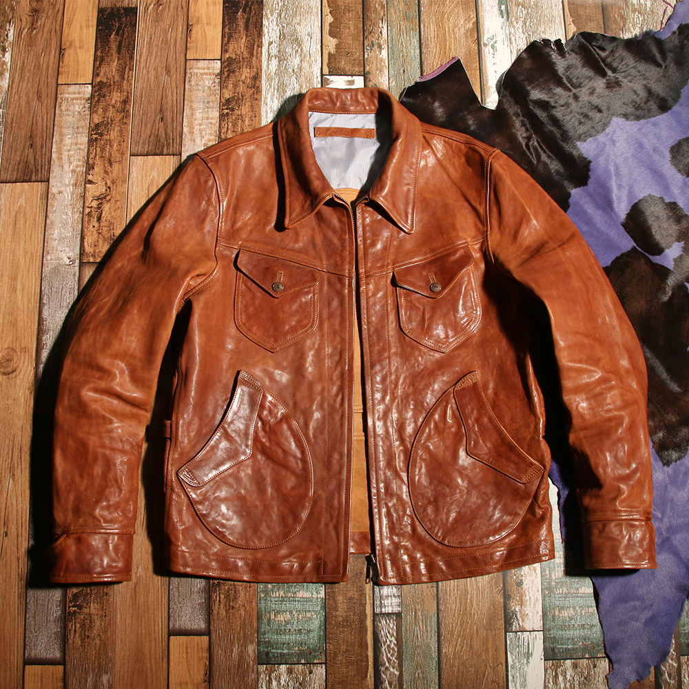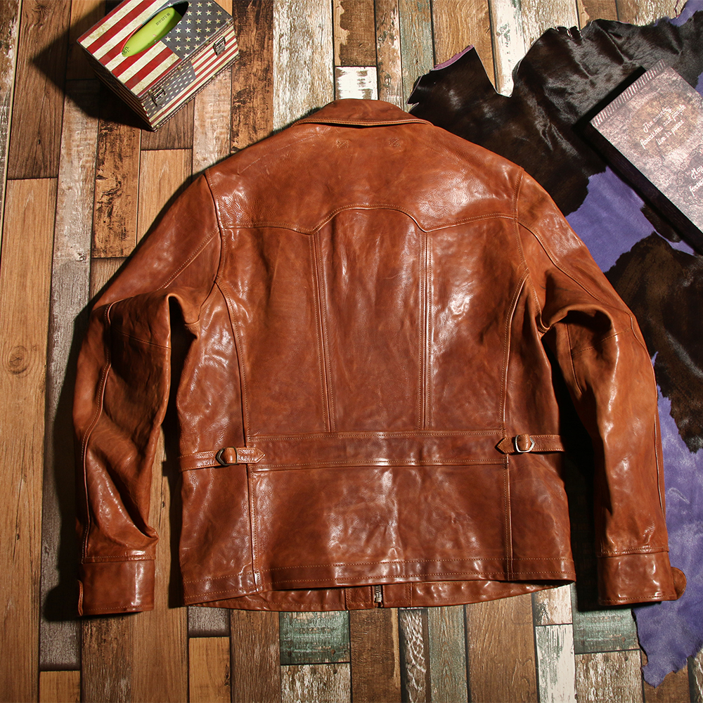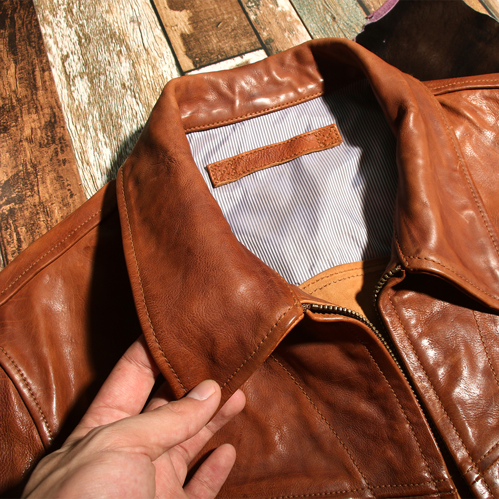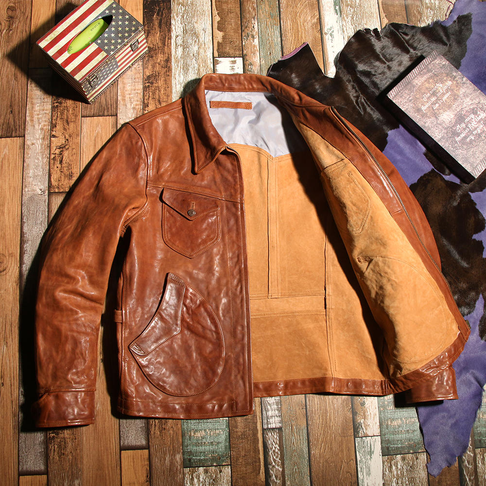 cowhide American vintage farmer jacket lapel do old short leather jacket bomber jacket men