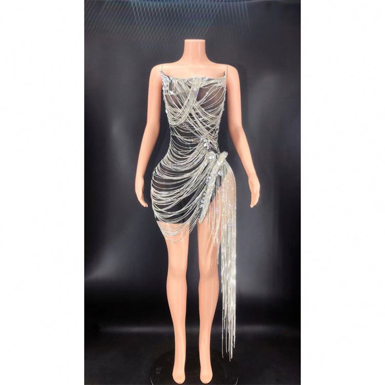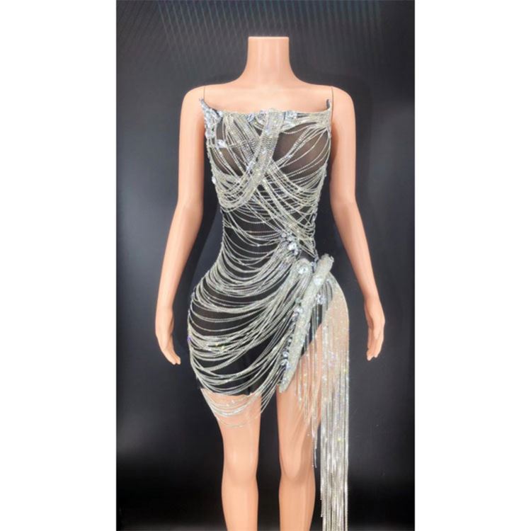 Blue Crystal Rhinestone Wedding Dress New Design Summer Women's Sexy Deep Sling Dresses Fashion Elegant Party Dress