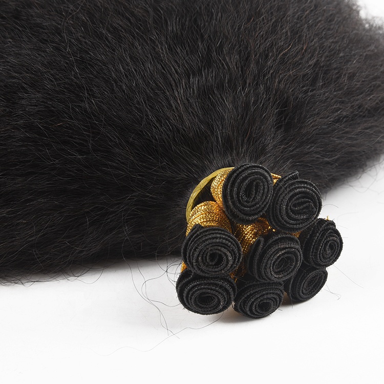 Wholesale Double Drawn Kinky Straight Human Hair Extension Wew In Weft Hand Tied Human Hair Extension
