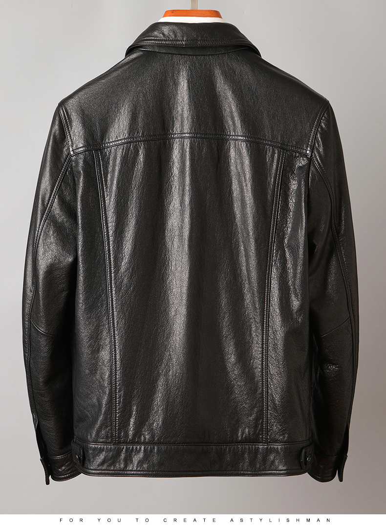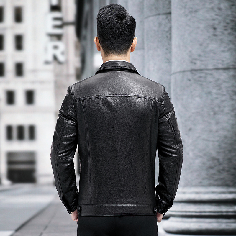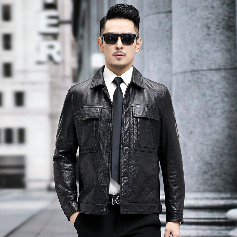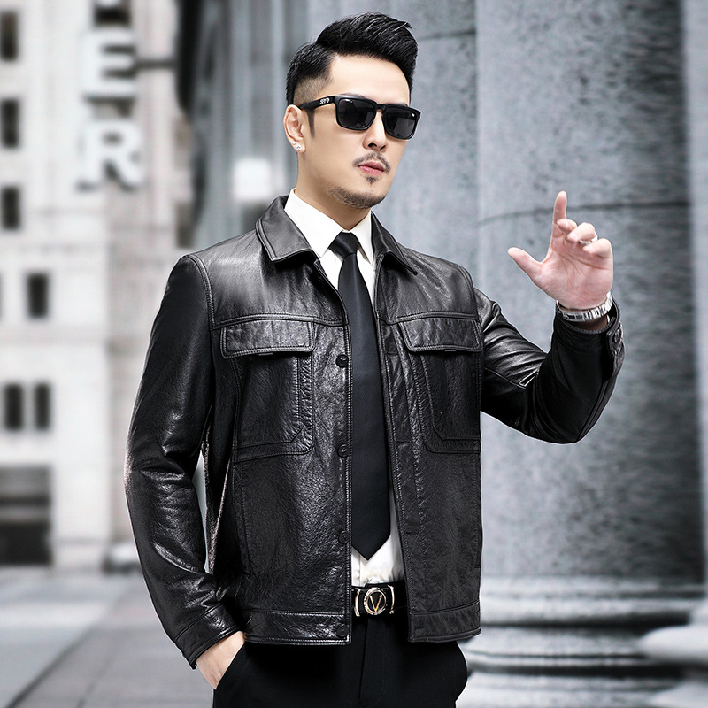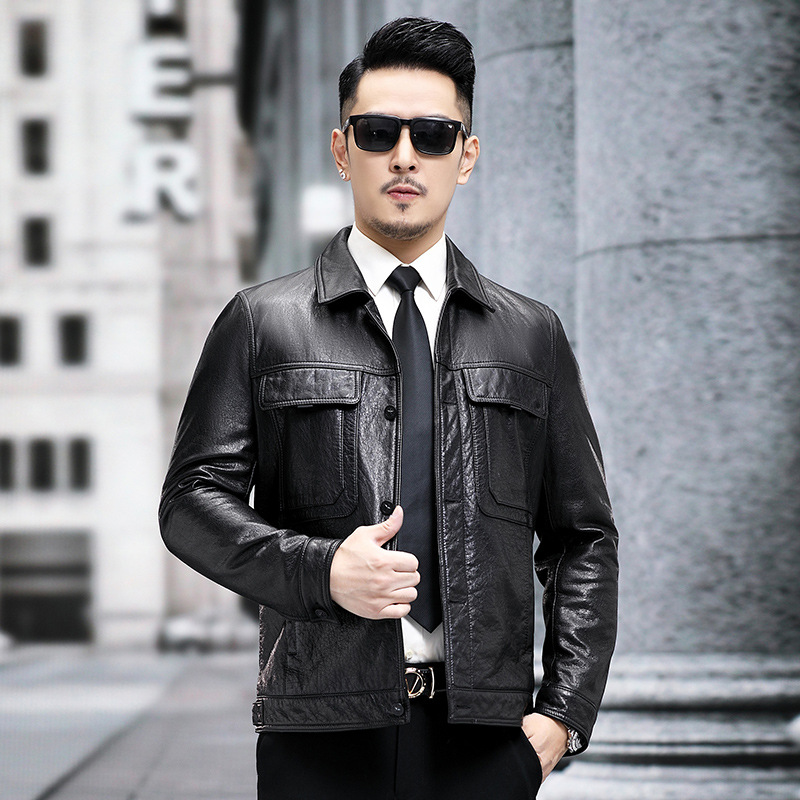 New genuine leather men leather jacket with lapel trend faux leather fabric for clothing short motorcycle jacket autumn jacket