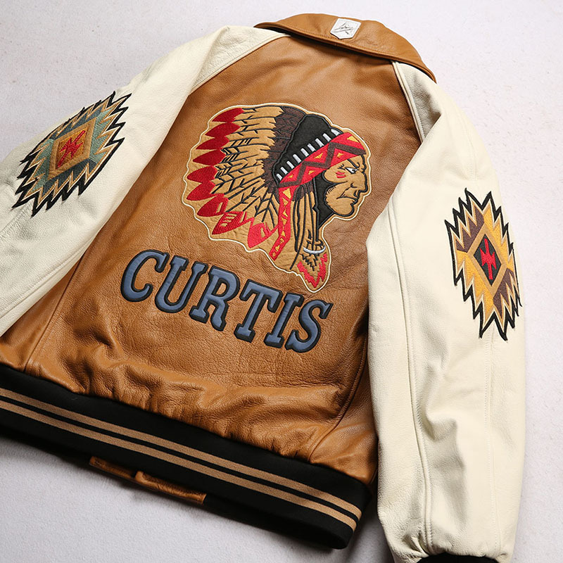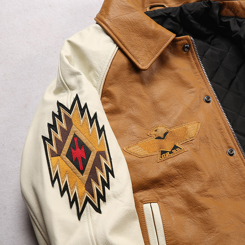 2023 Western Custom Logo Top Quality Material Genuine Leather Coats Embroidery Aztec Baseball Casual Sports Cowhide Jackets