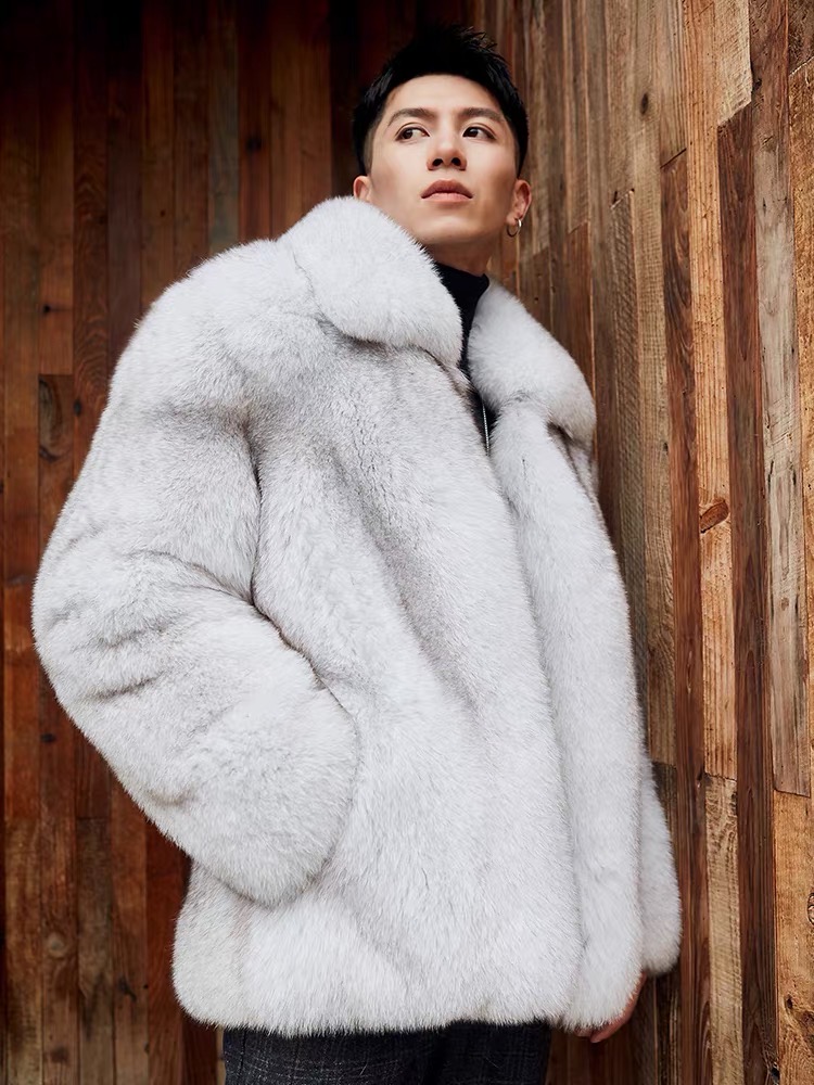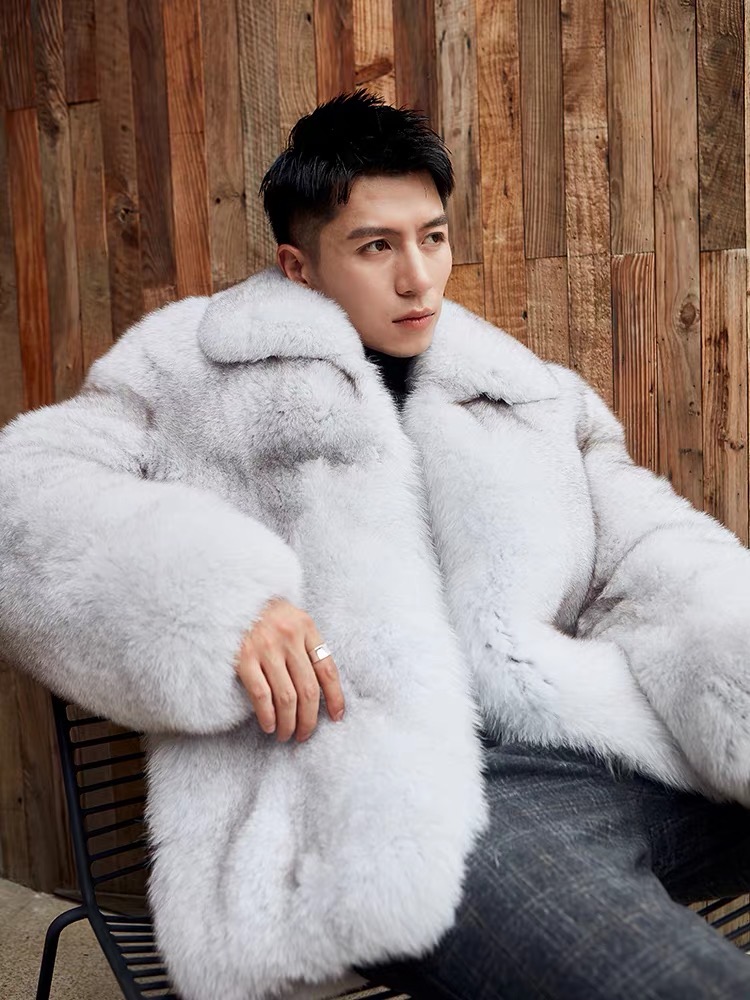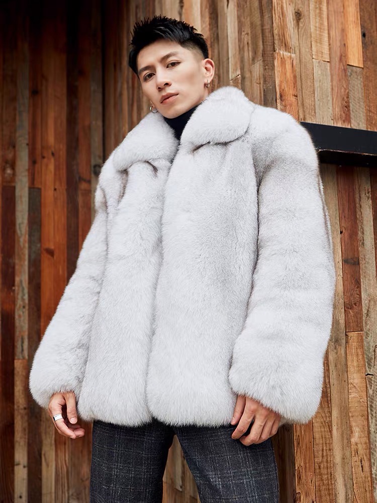 New Arrives casaco de pele de raposa Solid Color Double layered collar Winter Fluffy outerwear Men Long Fur Coat