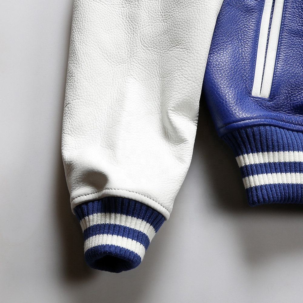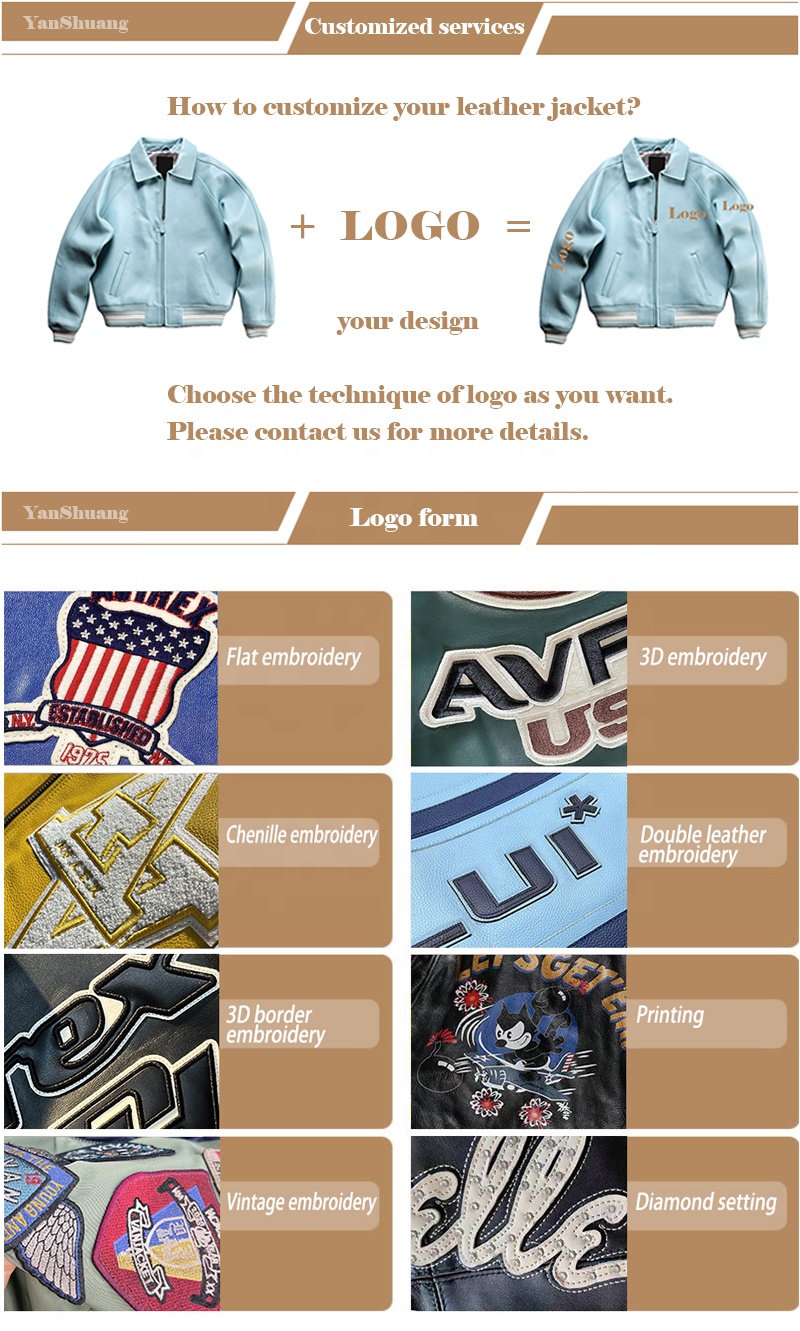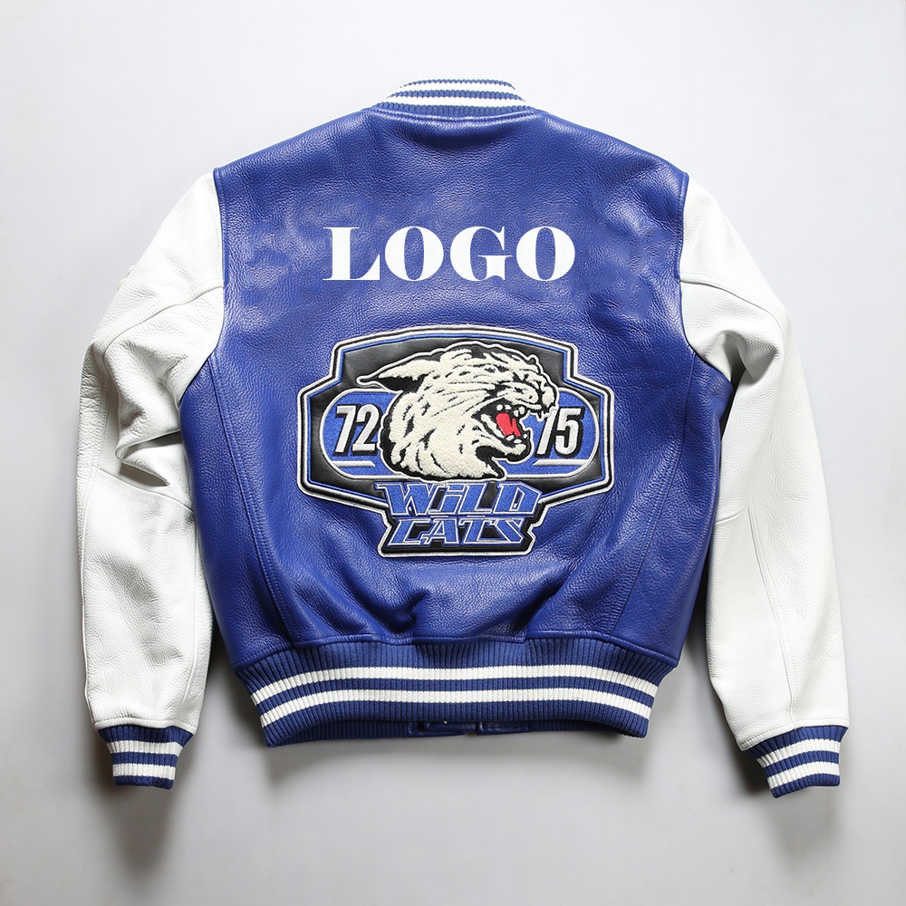 OEM Custom European Plus Size genuine leather jacket Chenille Embroidery thickened cowhide men High quality Baseball clothing