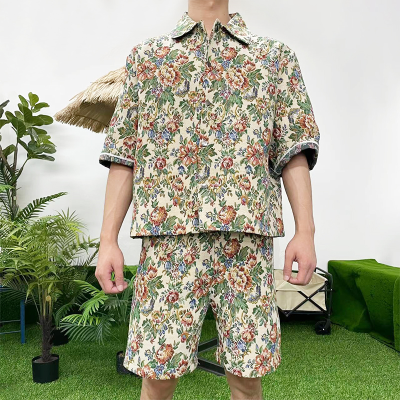 wholesale vintage floral pattern custom size men's shirt shorts set