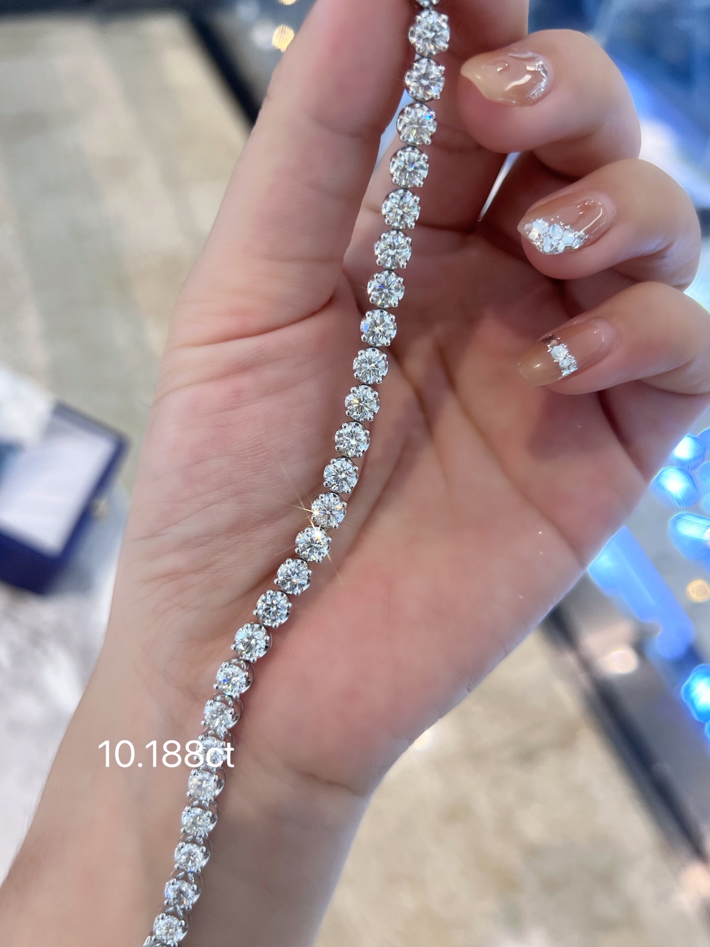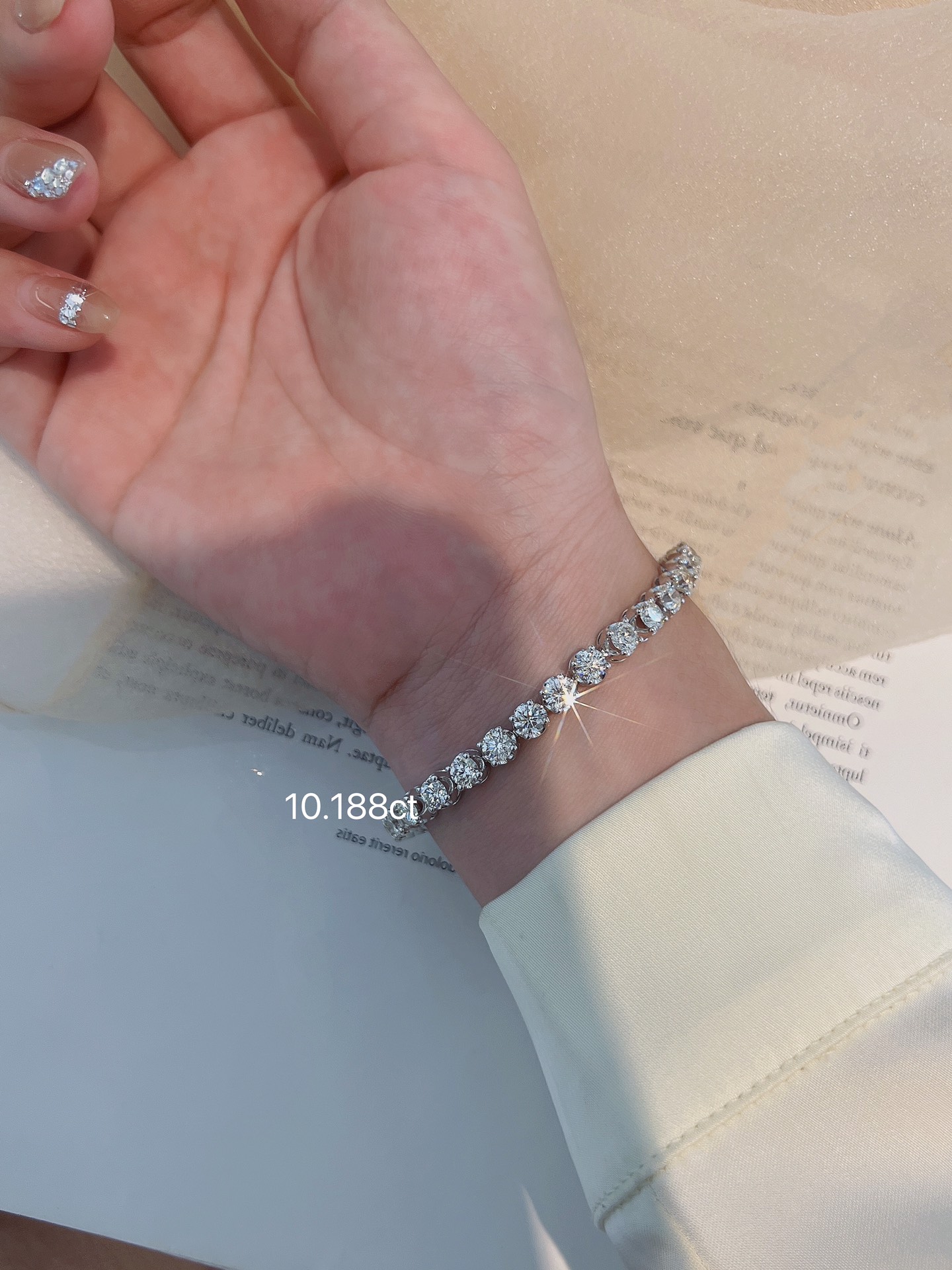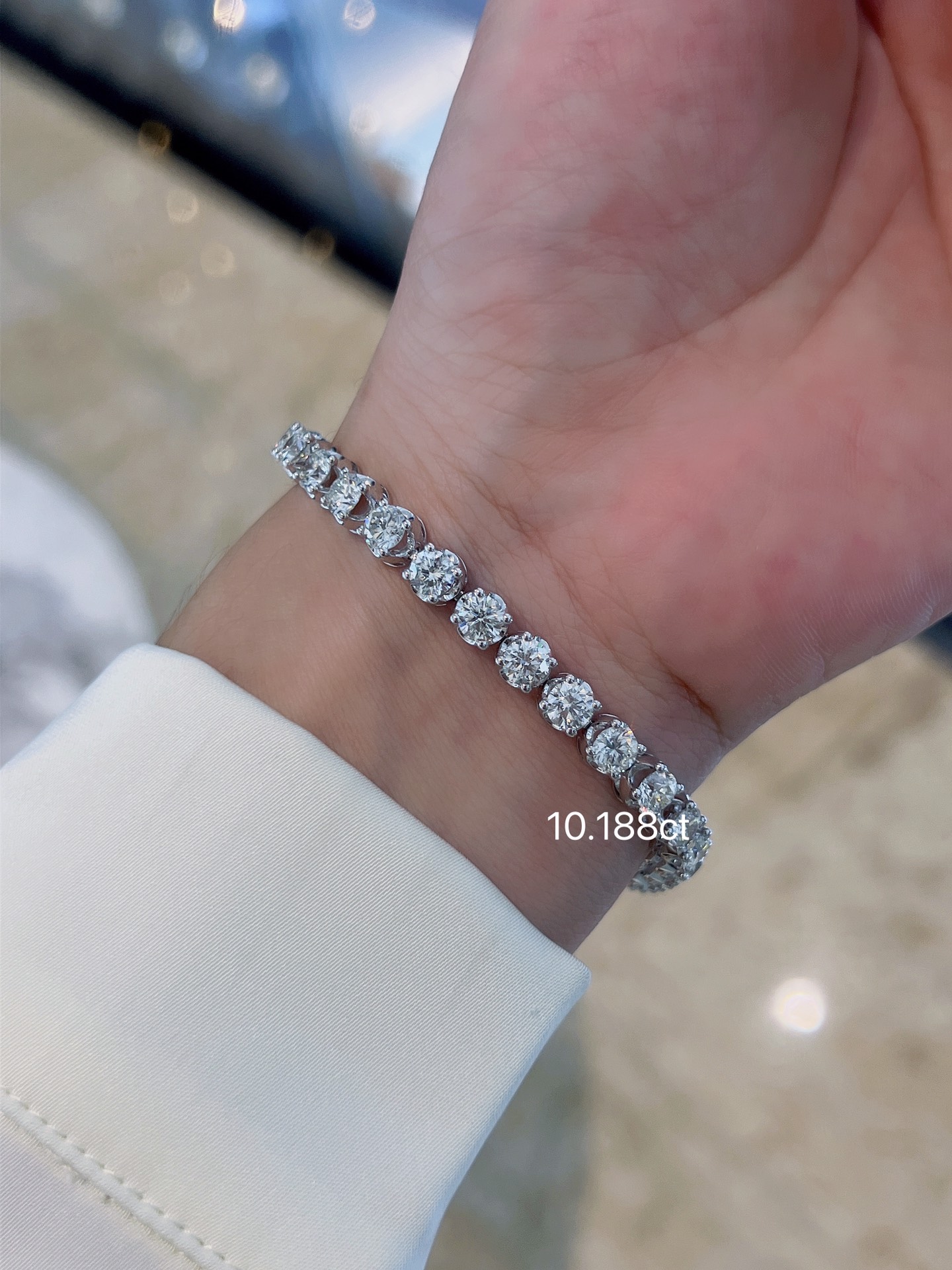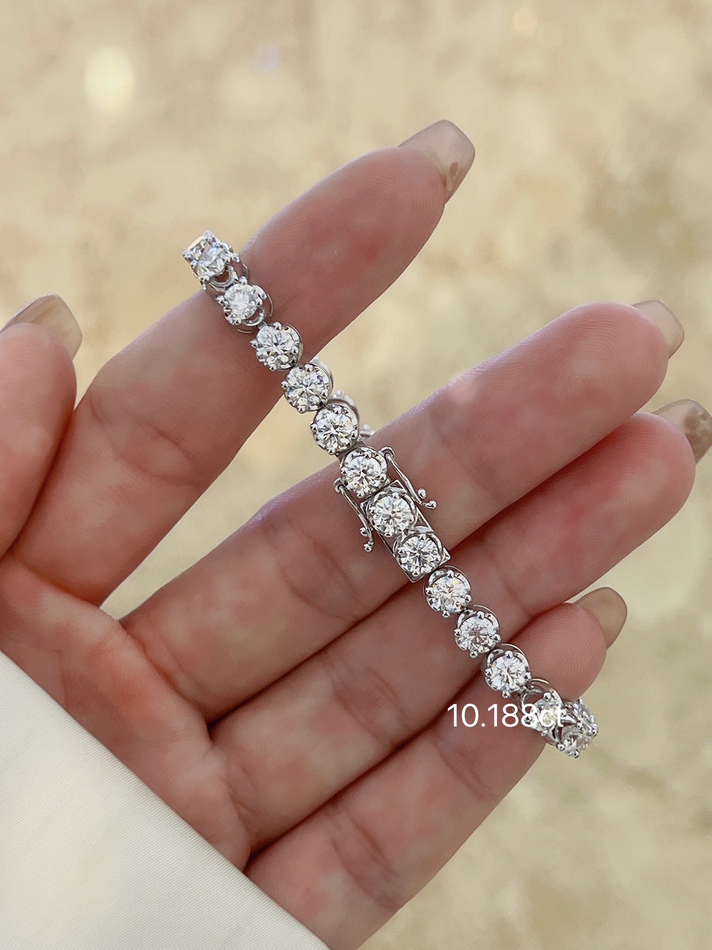 18k White Gold Crown Single Diamond 10.188ct Four Claw Diamond Bracelet Full Diamond Bracelet