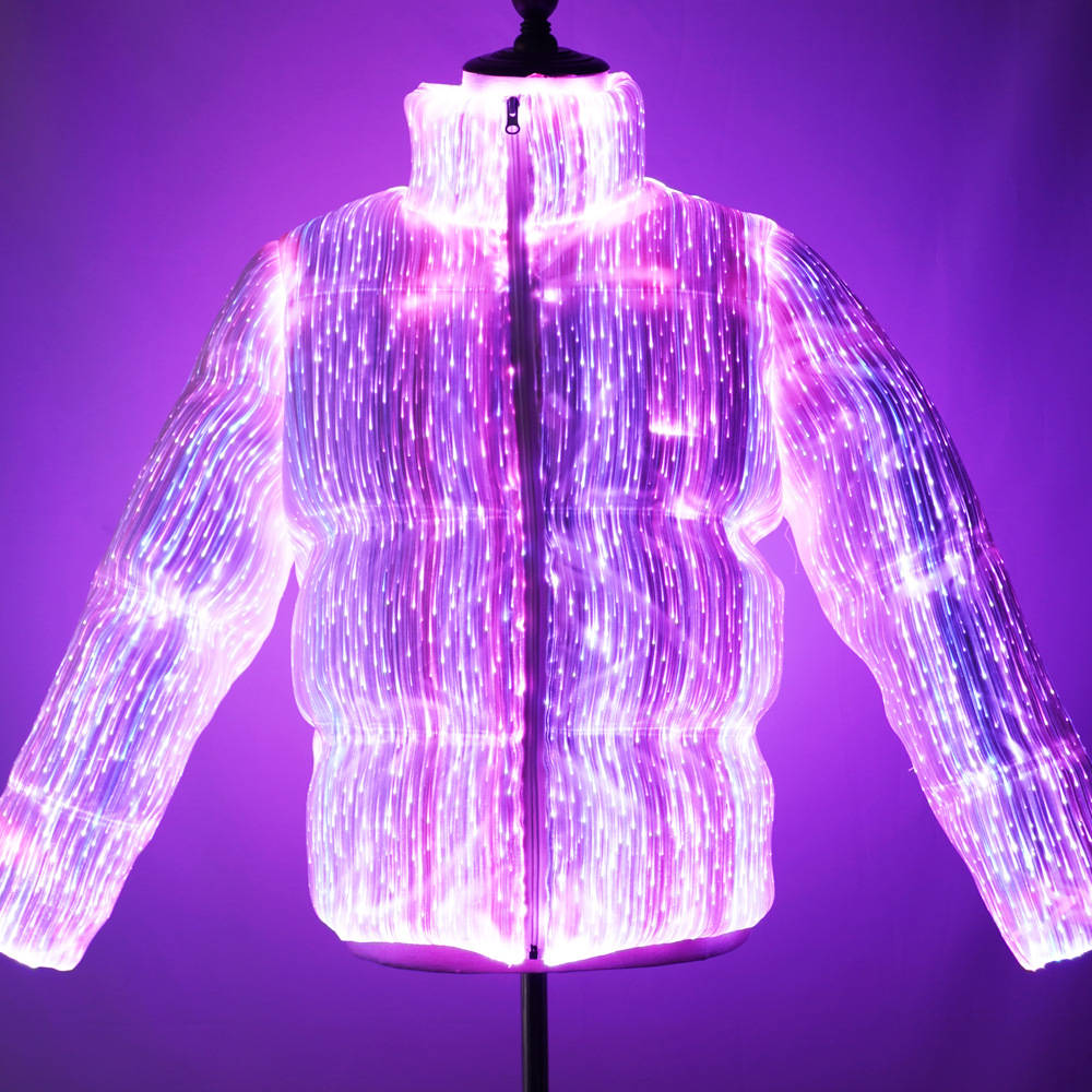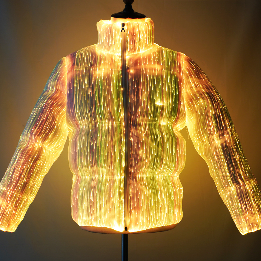 2023 light emitting down jacket fiber fiber starry sky down jacket LED colorful cloth fabric smart app jacket