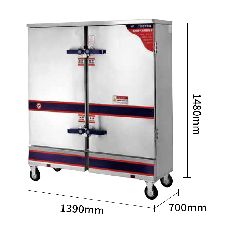 In-smart Industrial Steamer For Food Rice Seafood Machine Gas Environmental 24 Tray Steam Cabinet Dim Sum Kitchen Double Door