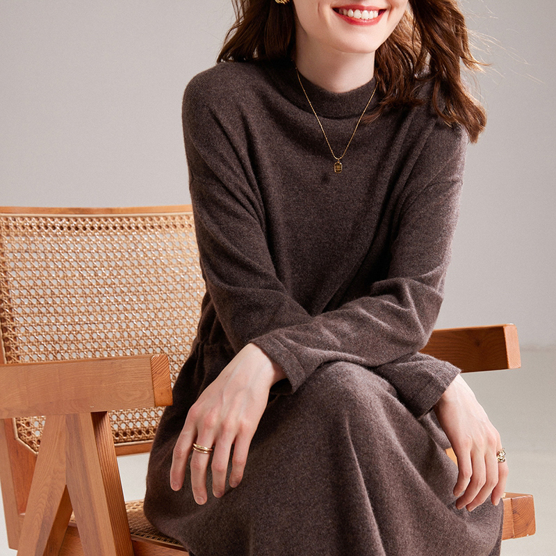 Long Hoodie Cashmere Dress Knitted Dress Women's Winter Sweater Long Dress