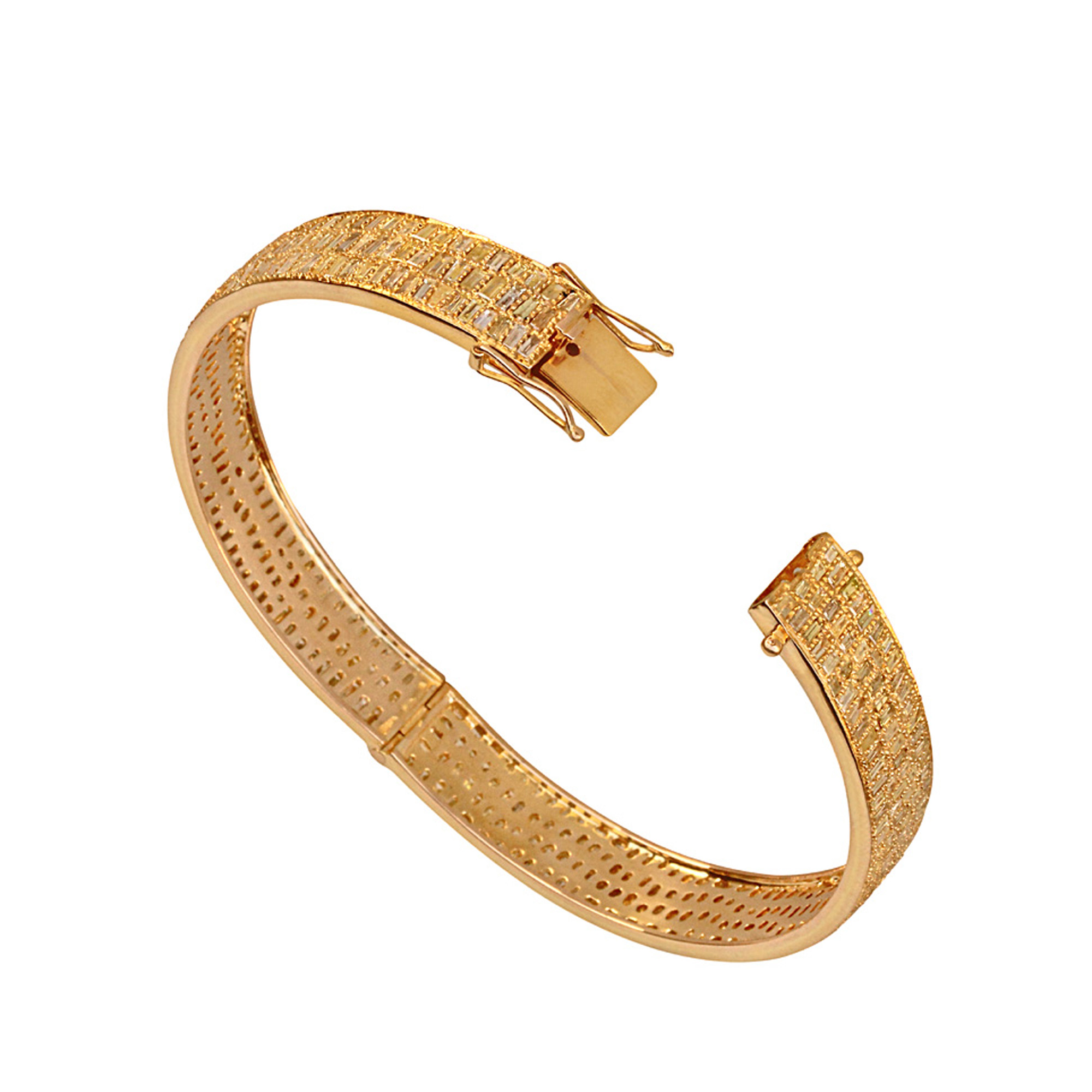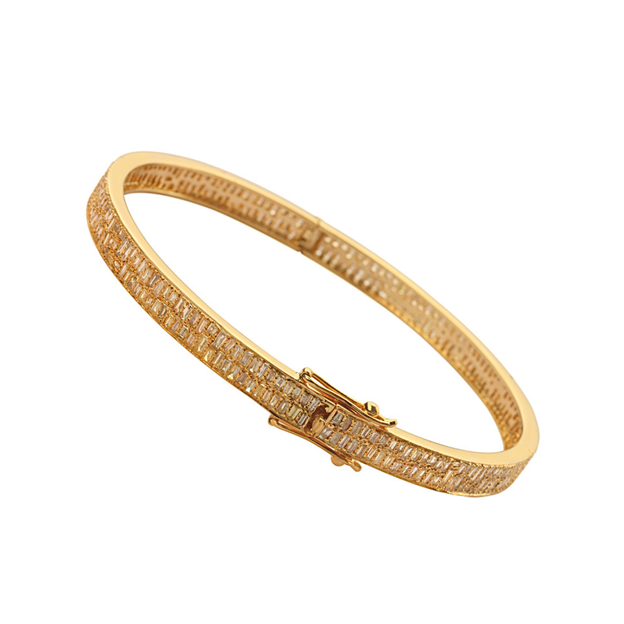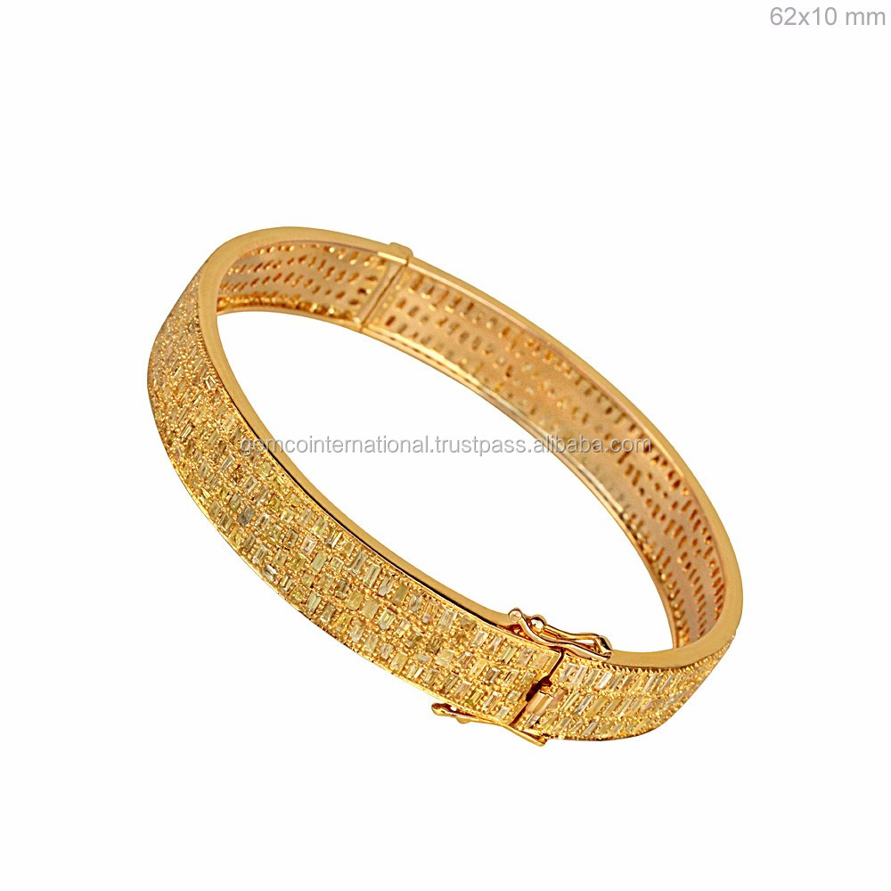 Trendy Solid 18k Yellow Gold Handmade Baguette Diamond Bangle Bracelet Jewelry Manufacturer Natural Diamond Solid Gold Jewelry