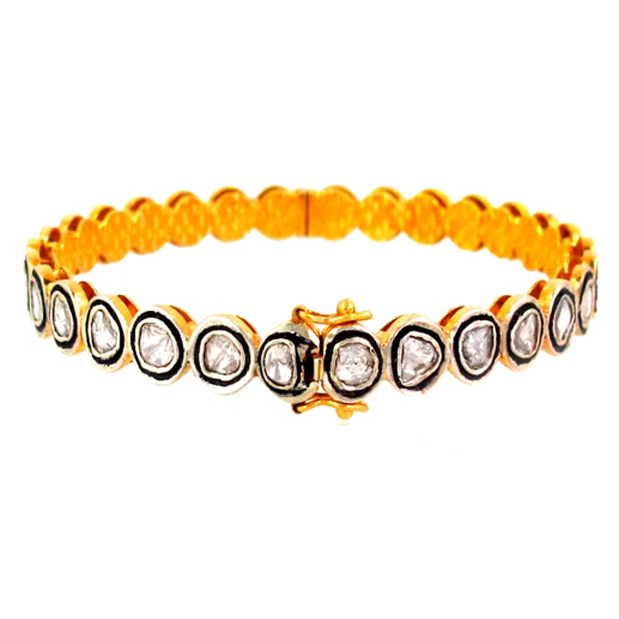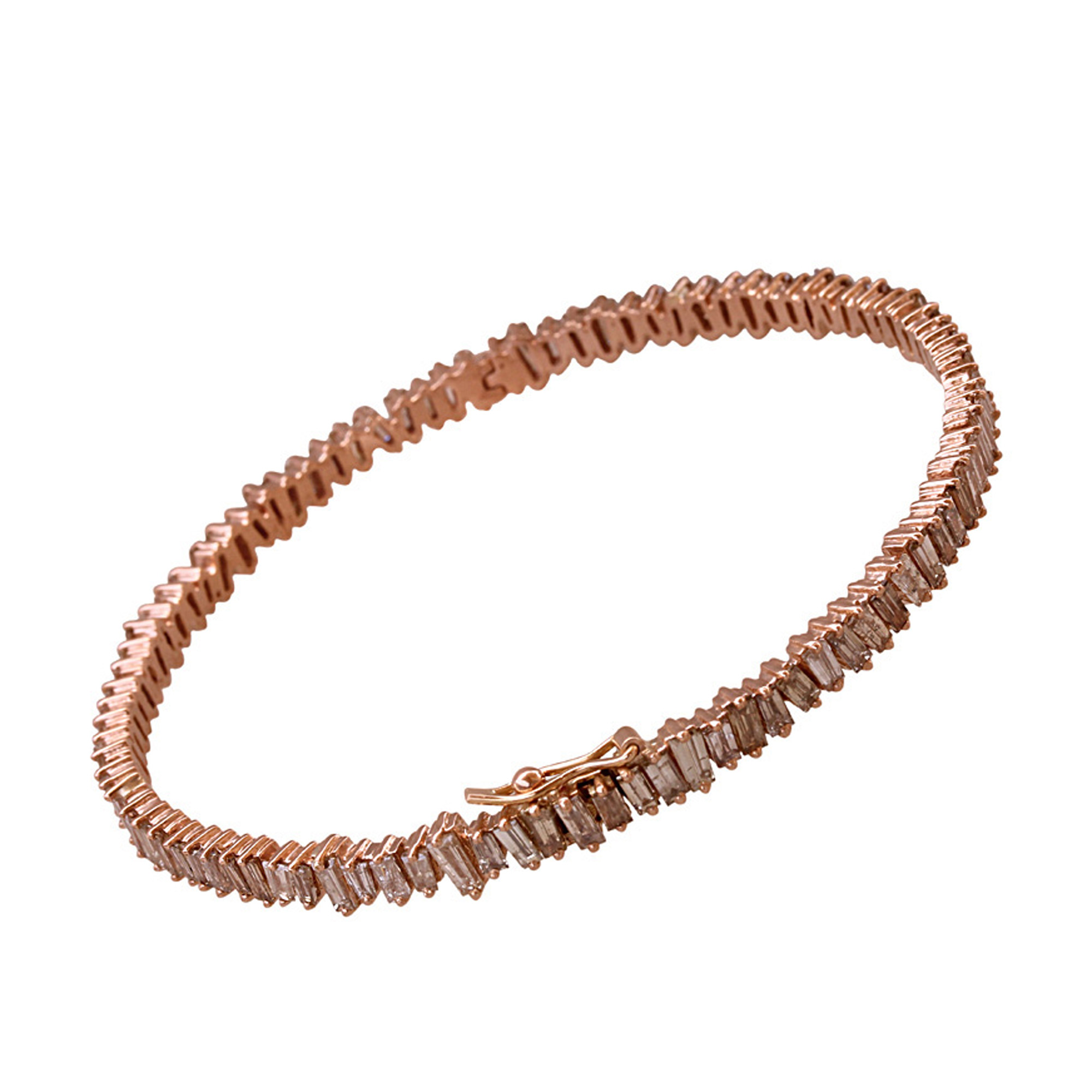 18k Yellow Gold Handmade Baguette Diamond Bangle Bracelet Fine Jewelry