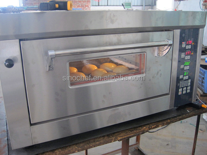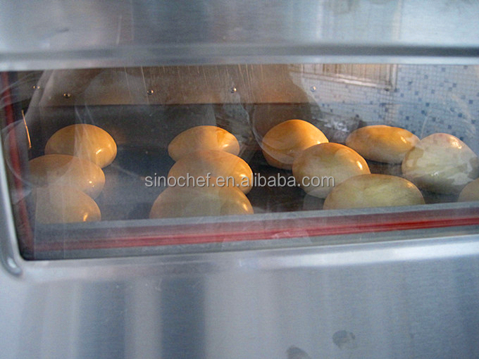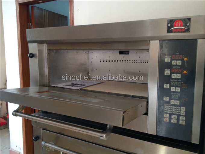 3.The oven chamber are aluminum plated ,heat radiation is strong ,built-in 15 mm ceramic baking stone and steam spray function,the steam is come from the steam box device which placed in the back side of the oven .So the oven can bake high-temperature quality bread and pizza .