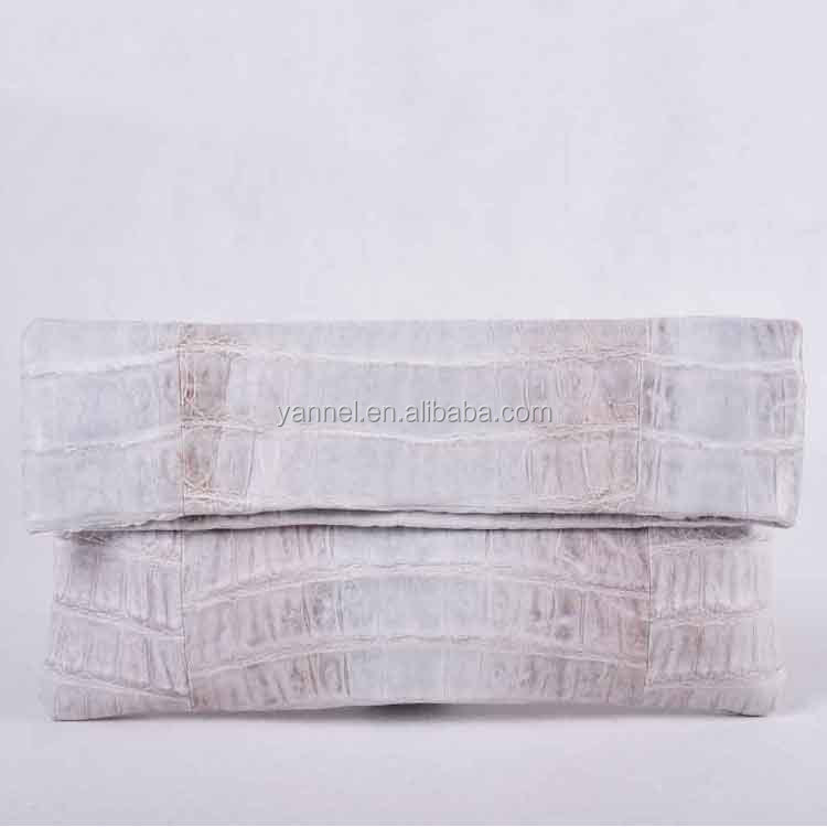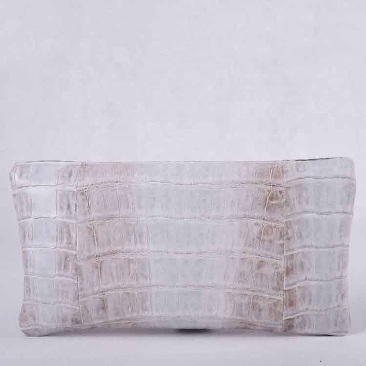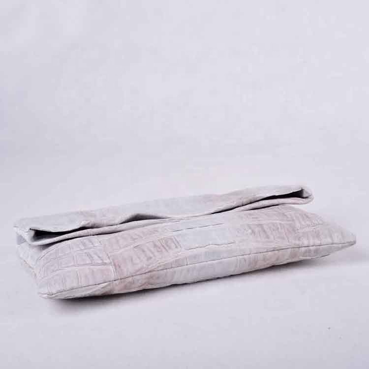 white/grey soft crocodile belly foldover clutch bag