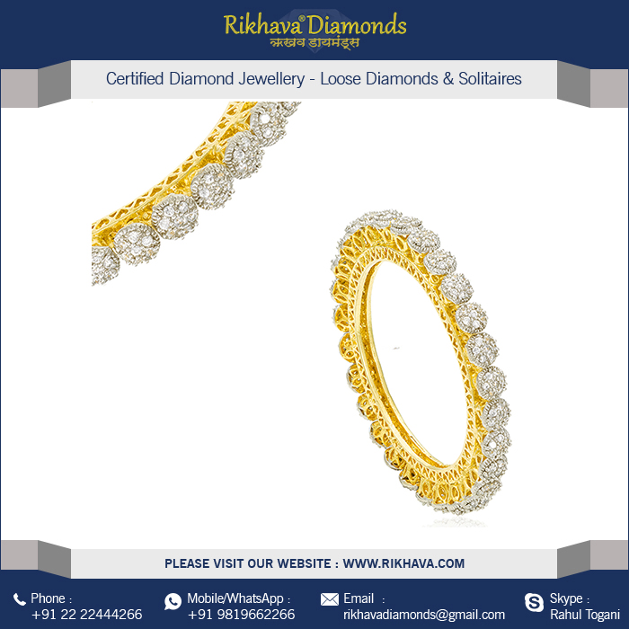 Rikhava Diamonds Is Manufacturer And Exporter Of Certified Diamond Jewellery. We deal in Complete Range Of Certified Diamond Jewellery Which Includes Diamond Nosepins, Diamond Bracelets, Diamond Engagement Rings, Diamond Pendant Set, Diamond Earrings, Diamond Necklace, Diamond Rings, Diamond Lockets / Pendant, Tanmaniya, Bangles etc. We also supply Loose Diamonds & Solitaires.