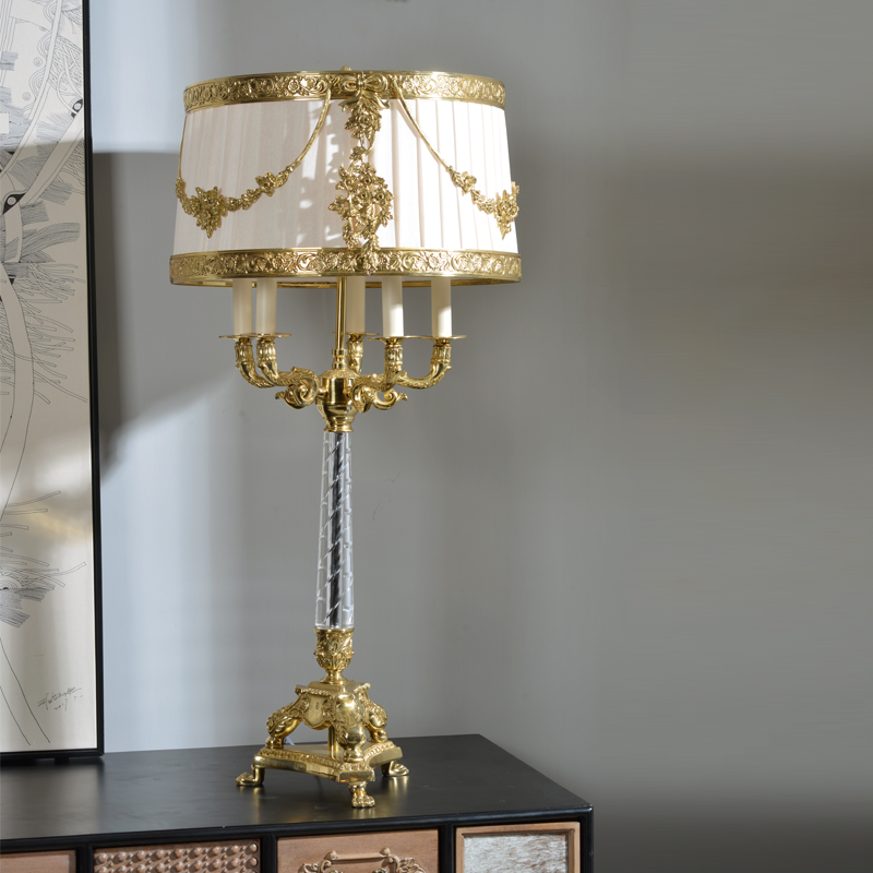 Luxury Regina Golden Imperial Golden Brass and Classic Vintage European Style Crystal and Bronze Table Reading Lamp