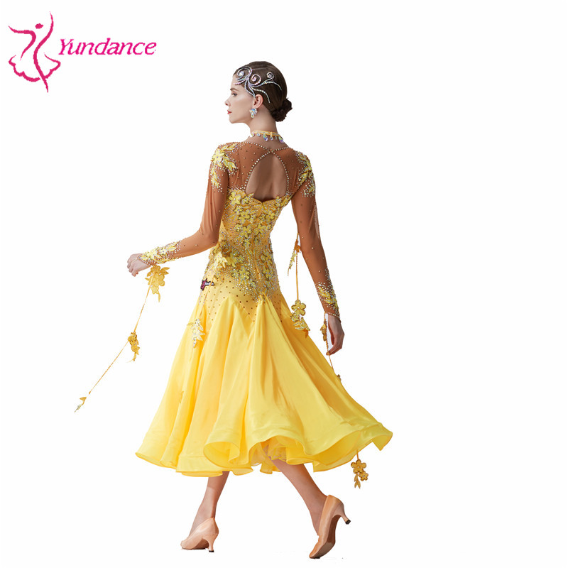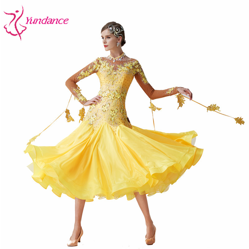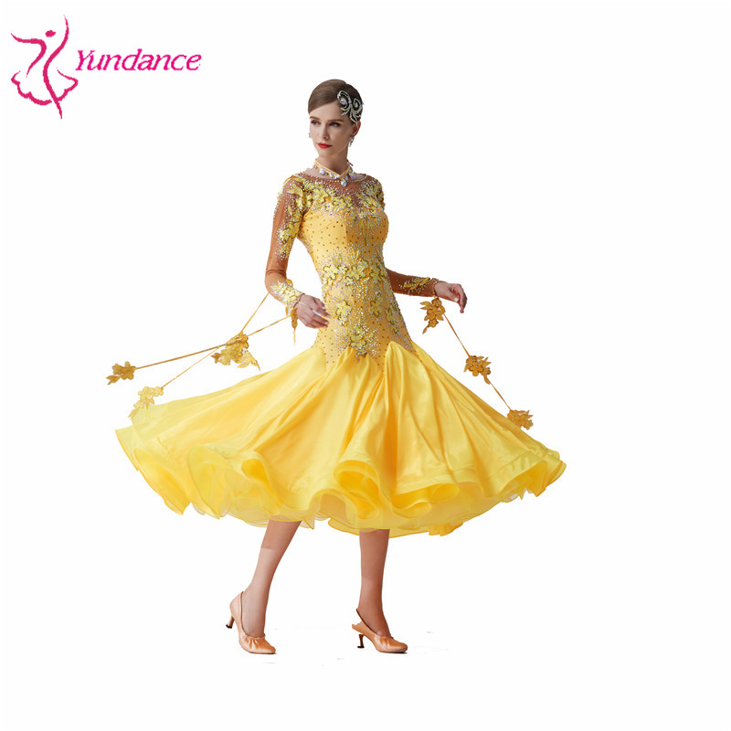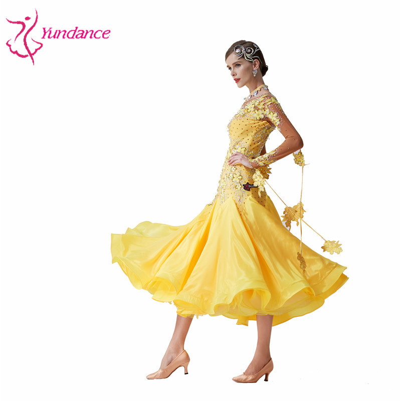 B-19543 Custom High Quality Ballroom Party Dress High-end Yellow Long Waltz Dance Dress Smooth Modern Dress For Competition